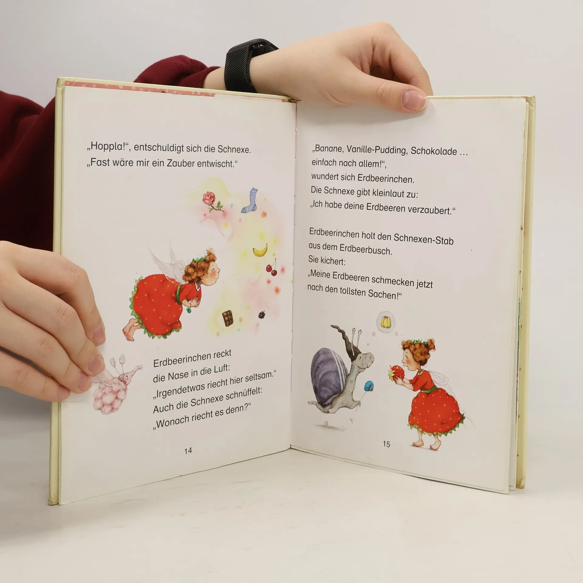 Oje! Die schusselige Schnexe hat Erdbeerinchens Erdbeeren verzaubert. Jetzt schmecken die Beeren nach Bananen, Vanille-Pudding und Würstchen! Da hat Erdbeerinchen eine tolle Idee. Wer in einem besonderen Kostüm kommt, darf von den Zauberbeeren kosten. Und als Bibo Schmetterling in Schwierigkeiten steckt, gelingt es der kleinen Erdbeerfee ihren Freund mit Hilfe der leckeren Zauberbeeren zu befreien. Vier lustige Feengeschichten!