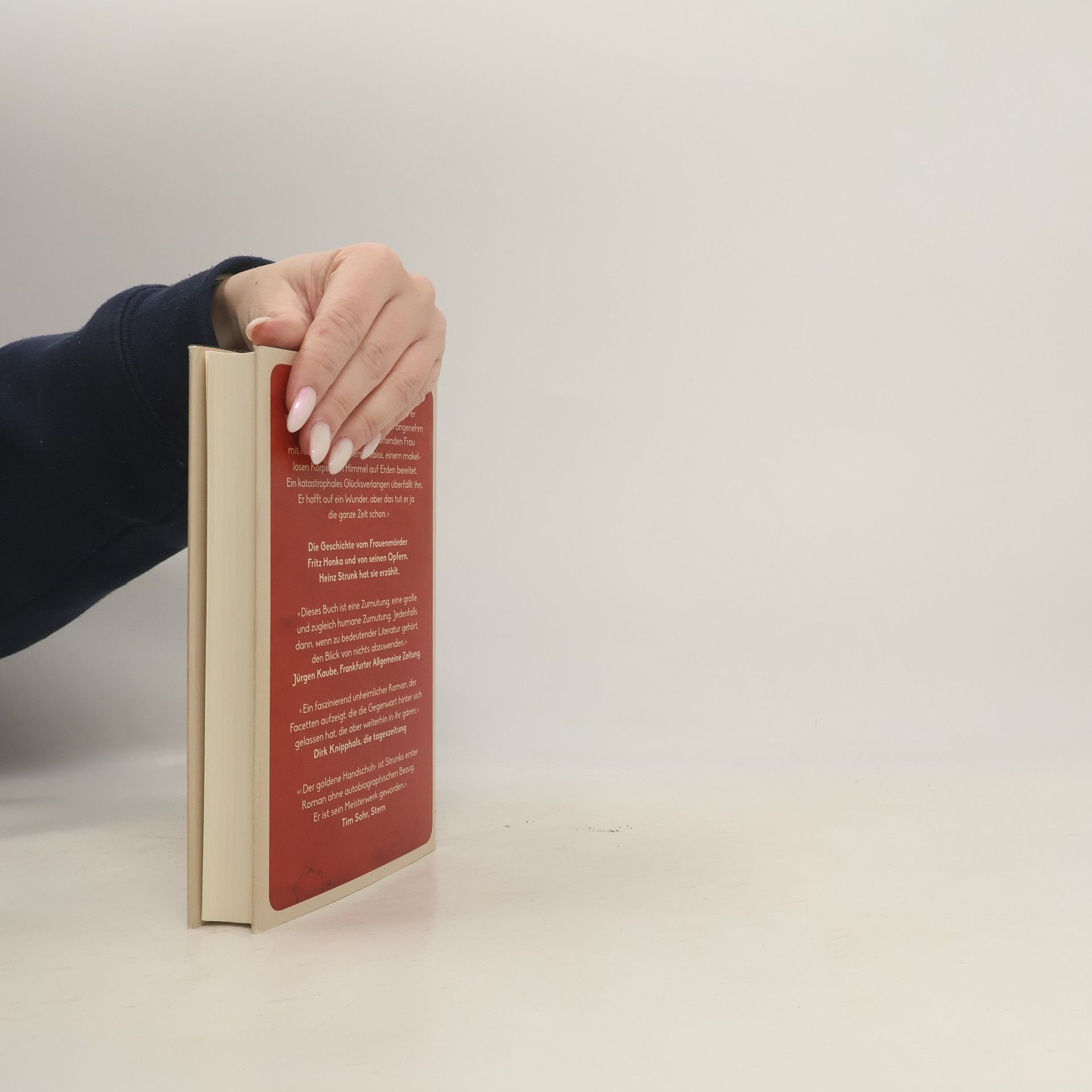 Dieser phantastisch düstere, grell komische und unendlich traurige Roman ist der erste des Autors ohne autobiographische Züge. Dennoch bleibt es ein typisches Strunkbuch. Der schreckliche Held Fritz Honka, ein Frauenmörder aus der untersten Unterschicht, erlangte 1976 in einem spektakulären Prozess schaurige Berühmtheit. Honka, gezeichnet von einer grausamen Jugend voller Missbrauch und Gewalt, nahm seine Opfer aus der Hamburger Absturzkneipe „Zum Goldenen Handschuh“ mit. Der Roman taucht tief in die infernalische Nachtwelt von Kiez, Kneipe und Abbruchquartier ein, wo das mitleidlose Leben alles Menschliche raubt. Mit erzählerischem Furor, historischer Genauigkeit und ungeheurem Mitgefühl zeichnet der Autor das Bild einer Welt, in der nicht nur der Täter gerichtsnotorisch war, sondern auch alle seine unglücklichen Opfer. Immer wieder unternimmt die Erzählung Ausflüge in die oberen Etagen der Gesellschaft, zu Angehörigen einer hanseatischen Reederdynastie, wo Geld und Menschlichkeit nicht unbedingt Hand in Hand gehen. Am Ende treffen sich Arm und Reich in der Vierundzwanzigstundenkaschemme am Hamburger Berg, zwischen Alkohol, Sex, Elend und Verbrechen: Menschen, die bis zur letzten Stunde mit dem Wunsch nach Glück geschlagen sind. Jetzt im Kino, verfilmt von Fatih Akin.