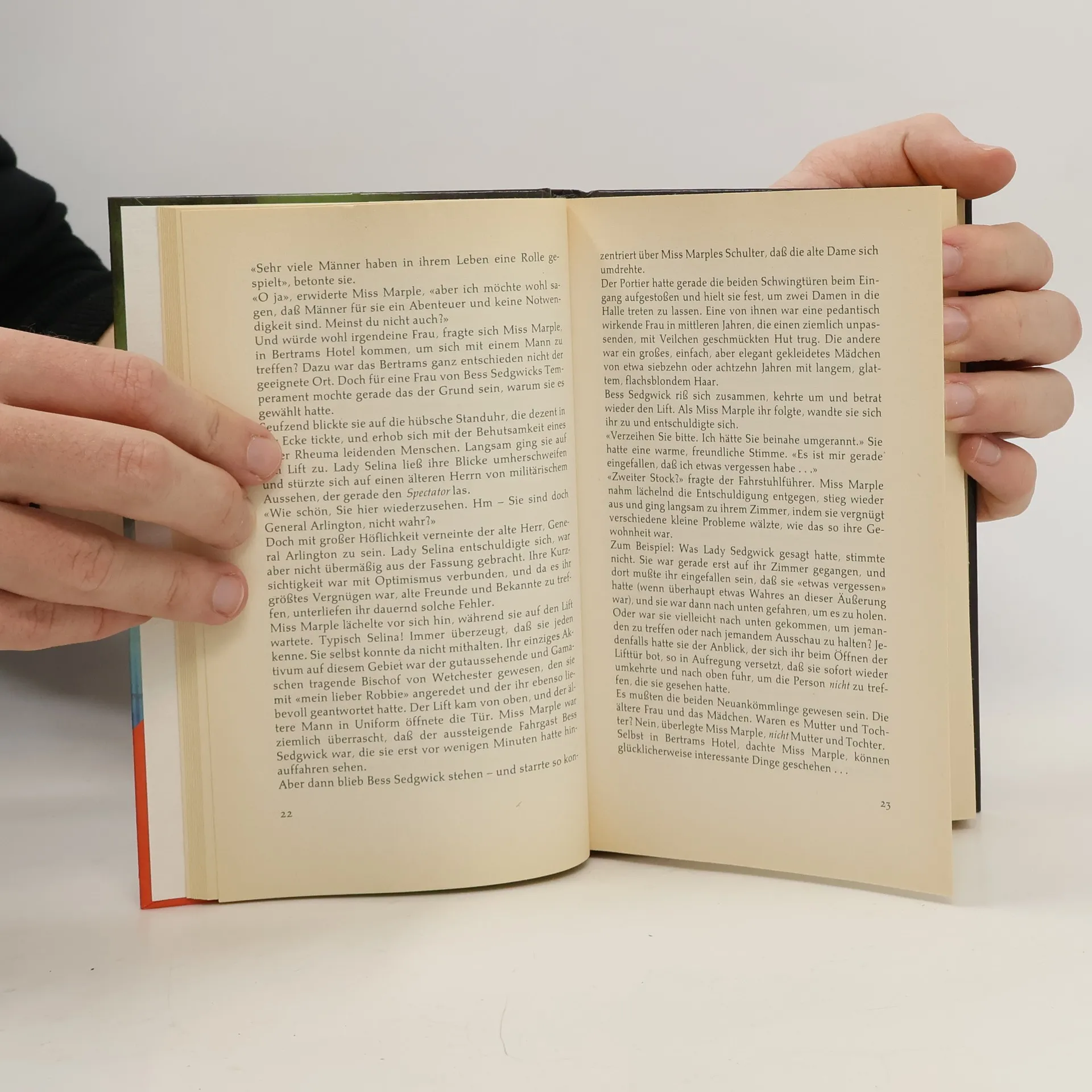 In ganz London scheint es kein friedlicheres Fleckchen zu geben als Bertrams Hotel: ein prächtiges altes Gebäude, eine Atmosphäre, an der die Zeit spurlos vorübergegangen ist, und eine Schar höchst ehrenwerter Gäste. Doch da verschwindet plötzlich Hochwürden Pennyfather, ein ziemlich zerstreuter geistlicher Herr und Stammgast im "Bertram". Was steckt dahinter? Sollte die Idylle des komfortablen Hotels nur Fassade sein? Und was hat es mit der geheimnisumwitterten Lady Sedgwick und ihrer Tochter Elvira auf sich, die ebenfalls zu den Hotelgästen zählen? Fragen über Fragen: Doch dass Miss Marple eine Antwort finden wird, darauf kann sich der Leser verlassen ...
