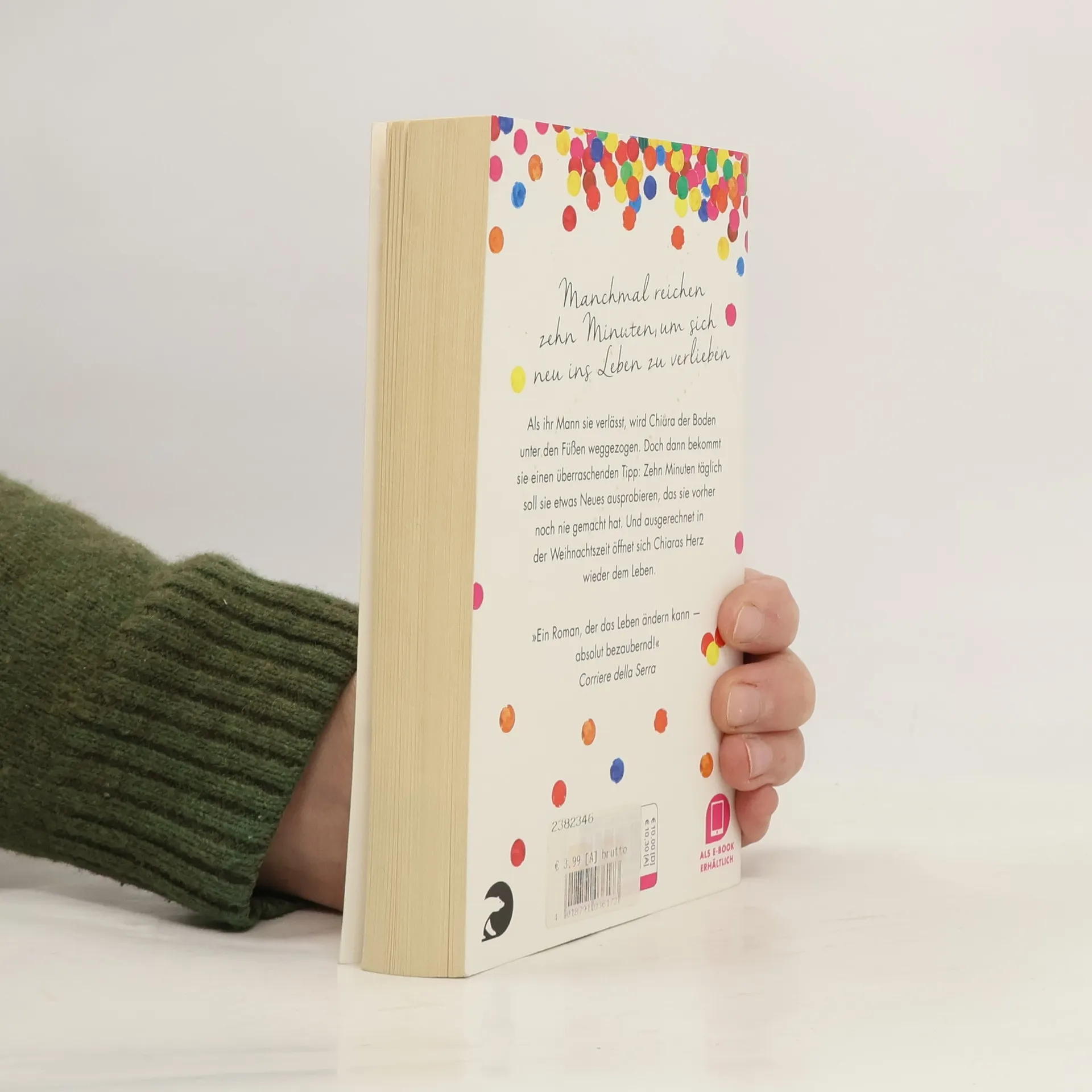 Es gibt Momente im Leben, da geht einfach alles schief. Kaum hat Chiara ihr geliebtes Häuschen verlassen, um mit ihrem Mann nach Rom zu ziehen, verlässt er sie für eine andere. Noch dazu wird aus heiterem Himmel ihre Kolumne in einer Wochenzeitung gestrichen. Für Chiara bricht eine Welt zusammen, doch ihre Therapeutin rät ihr zu einem kleinen Spiel: Chiara soll den Dezember hindurch zehn Minuten täglich etwas Neues ausprobieren, das sie noch nie gemacht hat. Chiara ist skeptisch, doch als sie schließlich mit 89 Freunden Weihnachten feiert, erlebt sie eine faustdicke Überraschung.