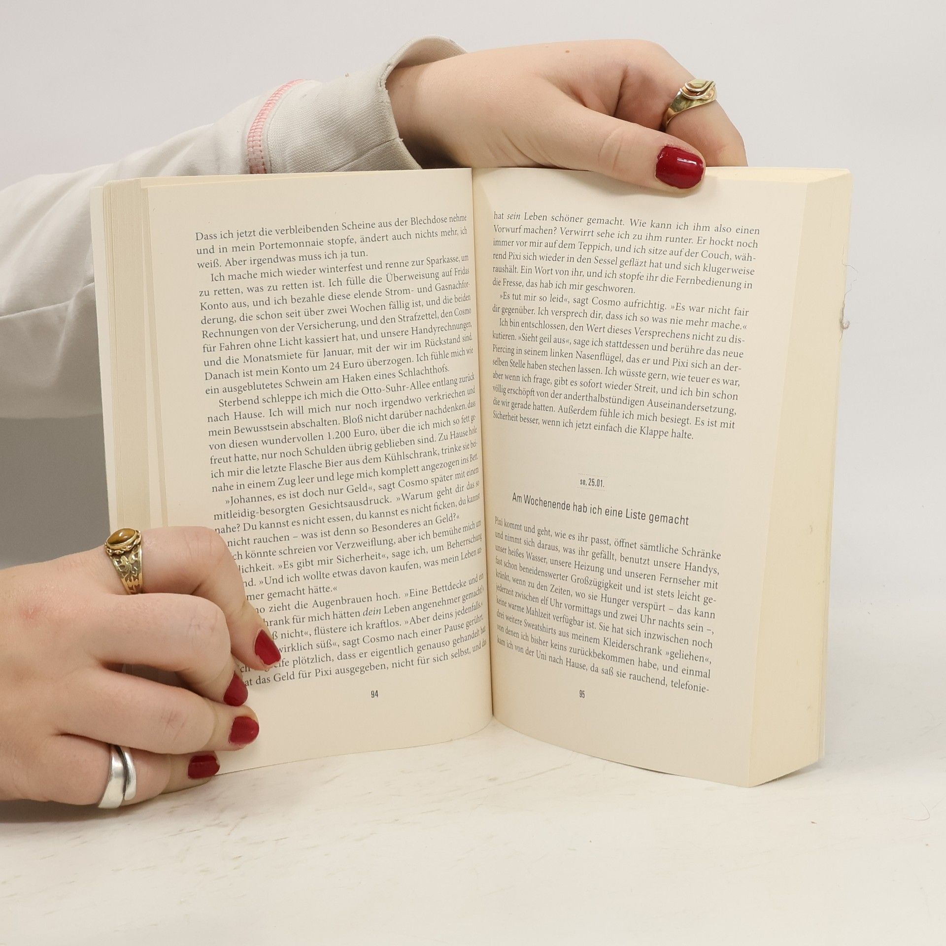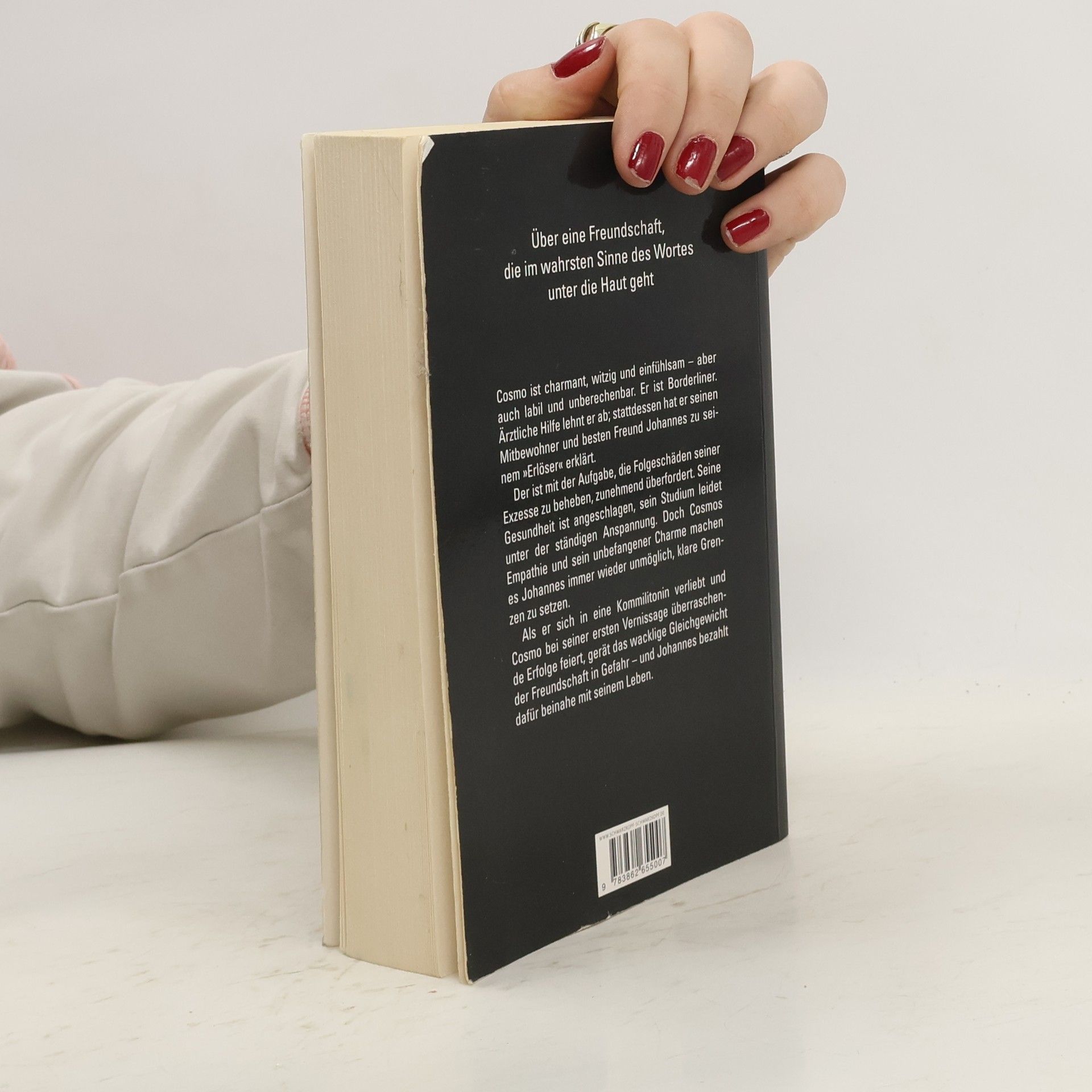 Rund 2,5 Millionen Borderliner gibt es allein in Deutschland. Die Persönlichkeitsstörung wirkt sich stark auf Familie und Freunde aus. Borderline-Kranke sind sprunghaft, impulsiv und werfen oft innerhalb von Sekundenbruchteilen alles über den Haufen: Kompromisslos beenden sie Beziehungen oder brechen Ausbildungen ab. Andererseits faszinieren sie durch besonderen Charme und außergewöhnliches Einfühlungsvermögen. Das macht es den Angehörigen schwer, die notwendigen Grenzen zu setzen. Sie lassen sich manipulieren und unter Druck setzen, helfen dem Erkrankten immer wieder aus selbst herbeigeführten Krisen heraus und fühlen sich verantwortlich. Denn Borderliner sind radikal – auch wenn es darum geht, anderen oder sich selbst Schaden zuzufügen. Cosmo ist Borderliner. Er experimentiert mit Drogen, verweigert die Nahrungsaufnahme, verletzt sich und andere mit Rasierklingen und brennenden Zigaretten, droht mit Selbstmord, quartiert eine minderjährige Ausreißerin in die Wohnung ein, befördert sich mit einer Überdosis Valium ins Koma und reist, einem Impuls folgend, mit einer Rockband nach London. Gleichzeitig beweist er seinem Mitbewohner Johannes seine tiefe Zuneigung und versteht ihn besser als jeder andere. Die Freundschaft der beiden pendelt zwischen emotionalen Grenzüberschreitungen und Momenten wortloser Harmonie; keiner kann auf den anderen verzichten. Als Johannes sich in eine Kommilitonin verliebt und Cosmo bei seiner ersten Vernissage als neuer Shootingstar der Kunstszene gefeiert wird, gerät nicht nur das zerbrechliche Gleichgewicht ihrer Freundschaft in größte Gefahr, sondern auch Johannes’ Leben.