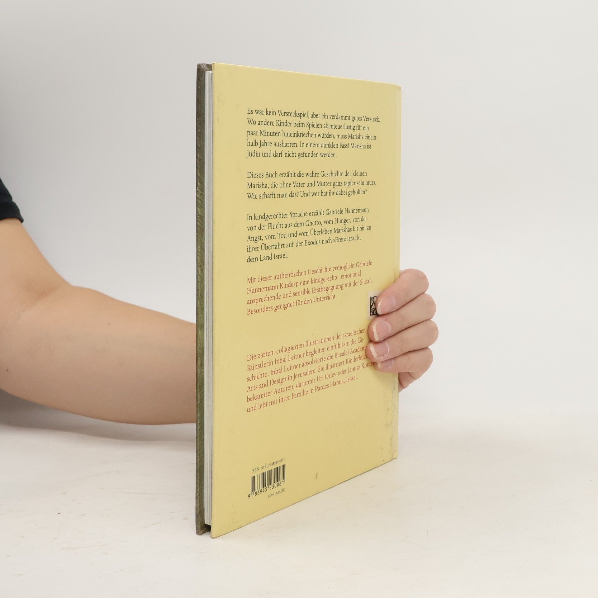 Eine Stunde jeden Tag darf Marisha das Fass unter der Erde verlassen. Von einer polnischen Familie in einer Scheune versteckt, überlebt sie die Shoah. Gabriele Hannemann hat die wahre Geschichte der Malka Rosenthal, vormals Marischa Dulberg, aufgezeichnet. In kindgerechter Sprache erzählt sie von der Flucht aus dem Ghetto, vom Hunger, von der Angst, vom Tod und vom Überleben Marishas bis hin zu ihrer Überfahrt auf der Exodus nach 'Eretz Israel', dem Land Israel. Hannemann ermöglicht Kindern eine kindgerechte, emotional ansprechende und sensible Erstbegegnung mit der Shoah. Besonders geeignet für den Unterricht.