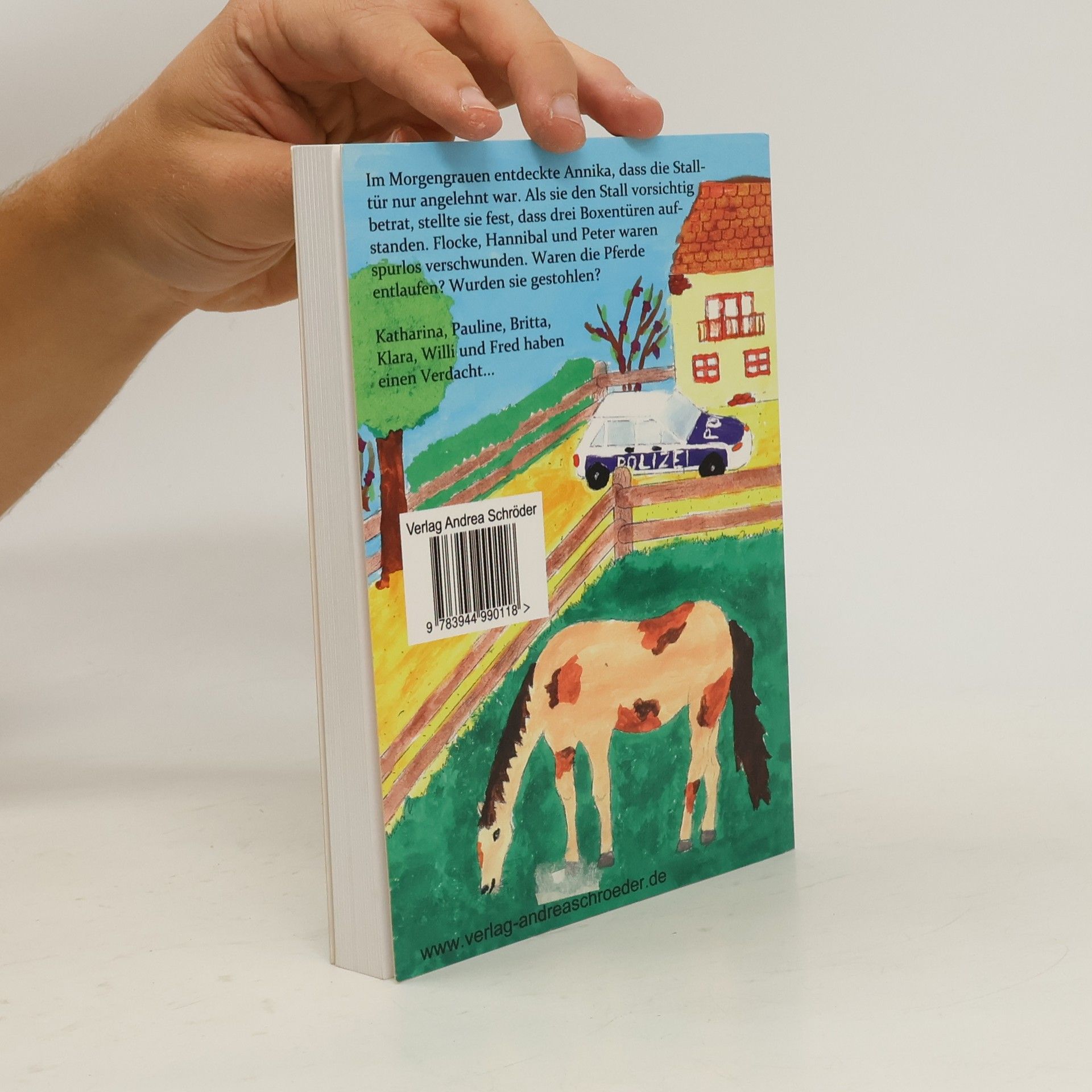 Im Morgengrauen entdeckte Annika, dass die Stalltür nur angelehnt war. Als sie den Stall vorsichtig betrat, stellte sie fest, dass drei Boxentüren aufstanden. Flocke, Hannibal und Peter waren spurlos verschwunden. Waren die Pferde entlaufen? Wurden sie gestohlen? Katharina, Pauline, Britta, Klara, Willi und Fred haben einen Verdacht. (Ein Kriminalroman für Kinder)