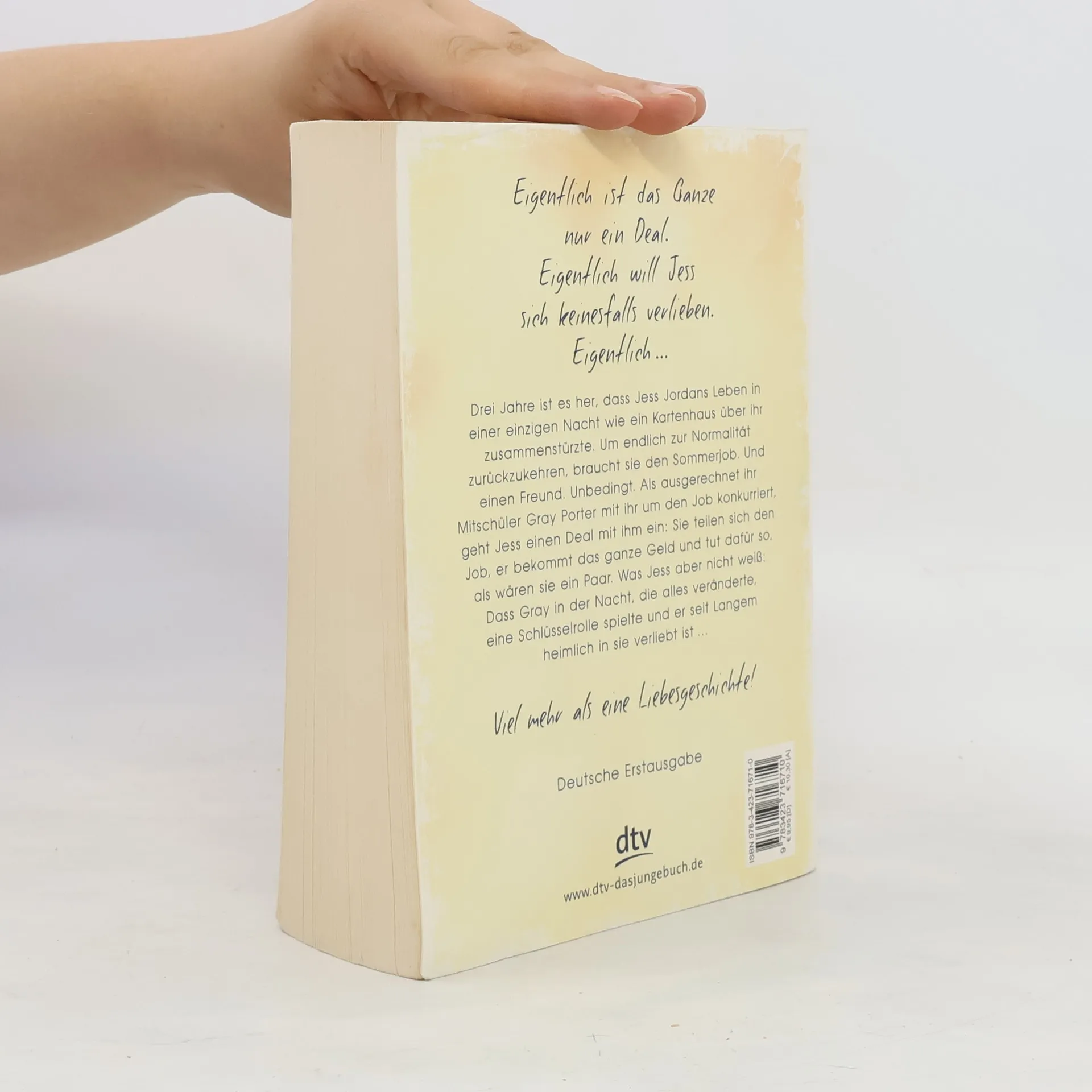 Viel mehr als eine Liebesgeschichte Drei Jahre ist die Nacht her, die das Leben der heute siebzehnjährigen Jess für immer veränderte. Nun will Jess nichts mehr, als wieder ein normales Leben führen – und dazu braucht sie 1. das Sommerpraktikum bei der Firma geekstuff. com, 2. ein soziales Leben und 3. einen Freund. Denn nur, wenn sie all das hat, werden ihre Eltern ihr glauben, dass alles wieder okay ist bei ihr, und sie endlich wieder ein normales Leben führen lassen. Als ausgerechnet ihr Mitschüler Gray sich als Mitkonkurrent für das Praktikum entpuppt, bietet sich für Jess die perfekte Lösung für alle drei Punkte: Sie teilen sich den Job, Gray bekommt das ganze Geld und tut dafür so, als wäre er ihr Freund. Was Jess aber nicht weiß: dass Gray seine ganz eigenen Gründe hat, sich auf den Deal einzulassen.