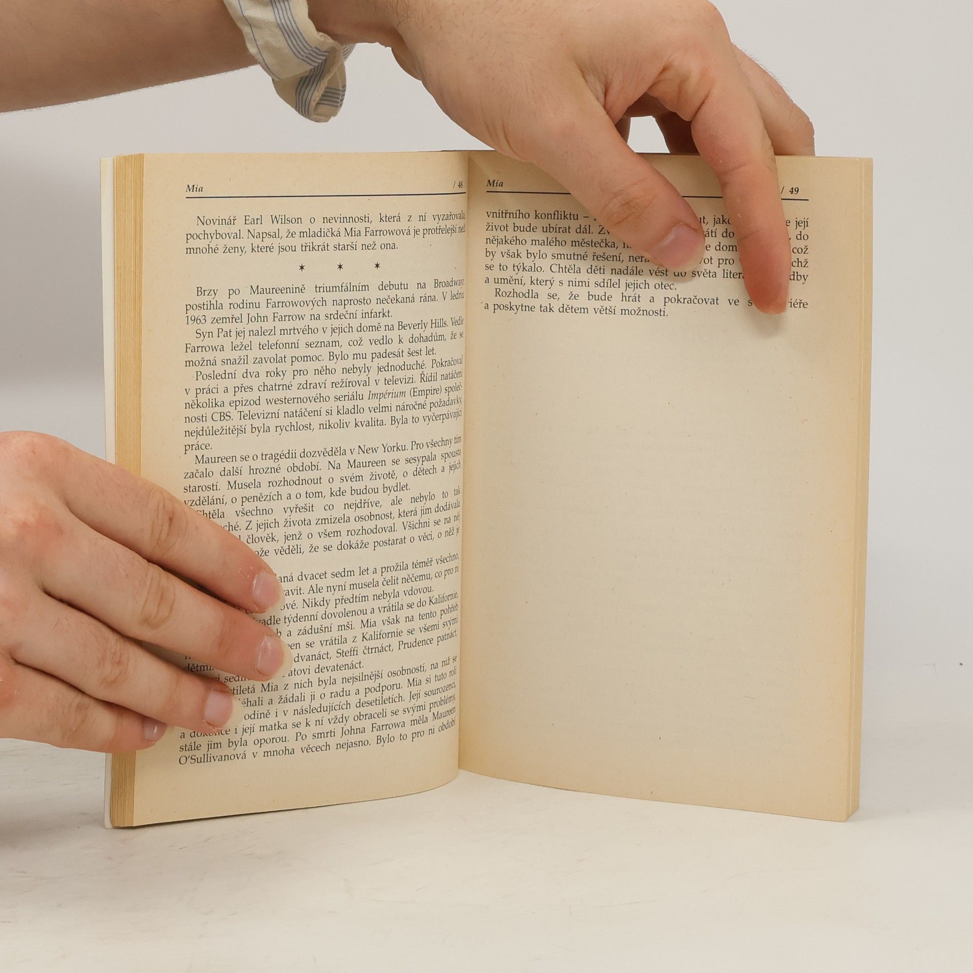 Kniha poukazuje na bouřlivý život Miy Farrow, na jeji početnou rodinu a rozvodový soudní proces s jejím dlouholetým partnerem Woody Allenem.