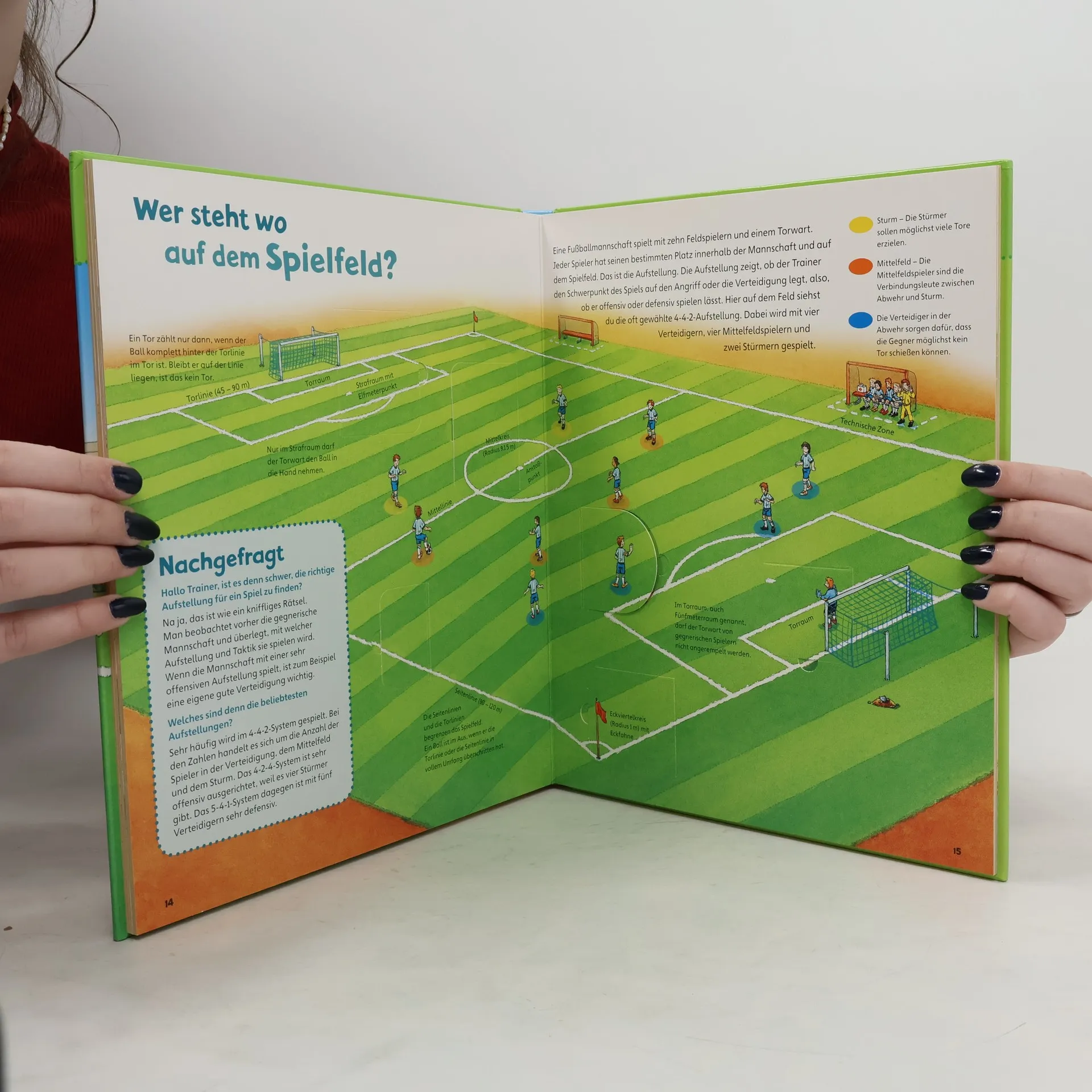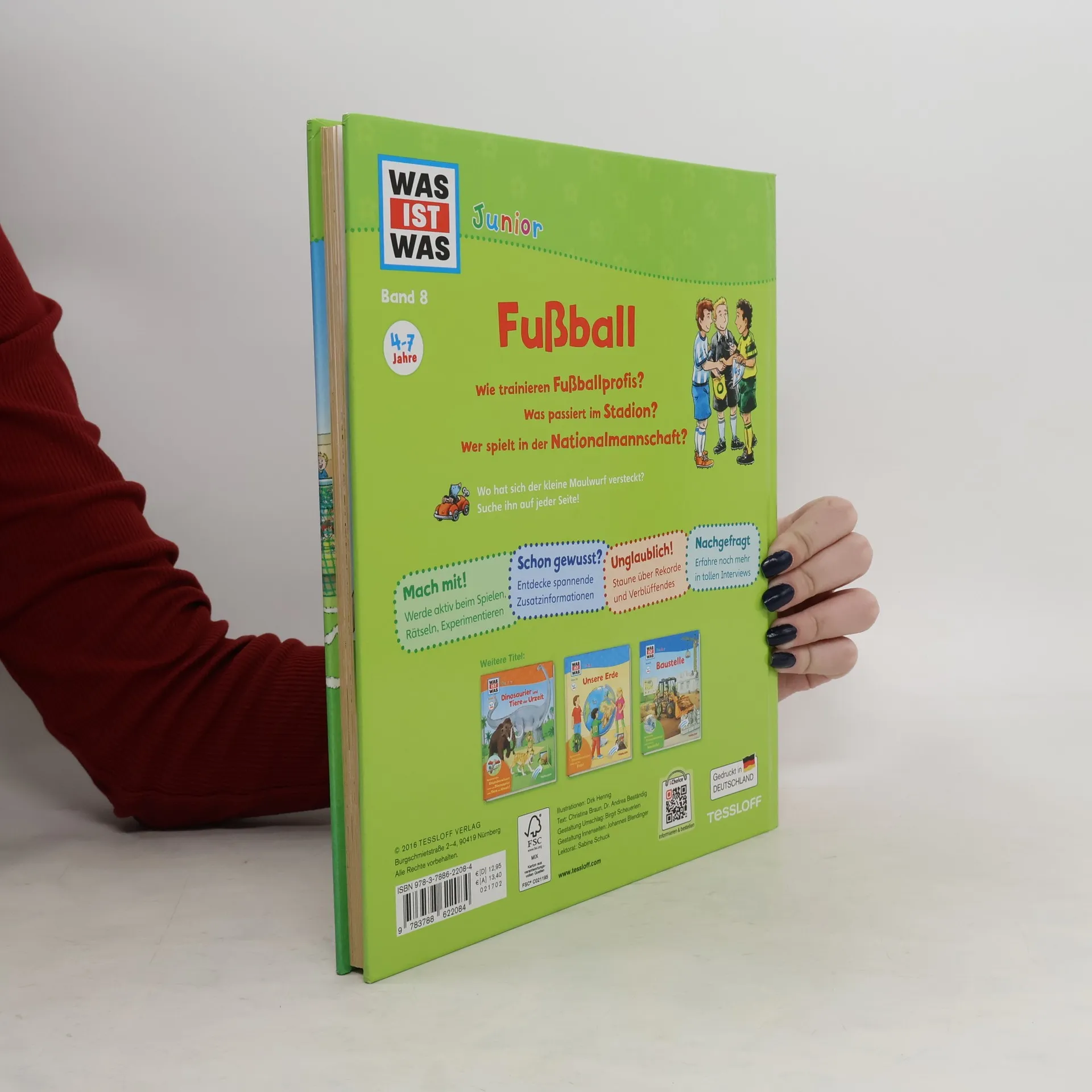 Fußball ist hierzulande der Favorit unter den Sportarten. Ferien, Wochenenden und freie Nachmittage werden gern von Groß und Klein im Stadion oder auf dem Sportplatz verbracht - beim Spiel des Lieblingsvereins oder mit eigenem Training. Das Junior-Buch wendet sich an Fans ab 4 Jahren. Es erzählt die Geschichte des Fußballs und beantwortet sachlich erste Fragen: Wie muss ein Spieler ausgerüstet sein? Was lernt er beim Training? Welche Aufgaben hat der Schiedsrichter? Welche Regeln gelten? Lustige Entdeckerklappen sorgen für kleine Überraschungen. Kleine Rätsel und Experimente laden zum Mitmachen ein.