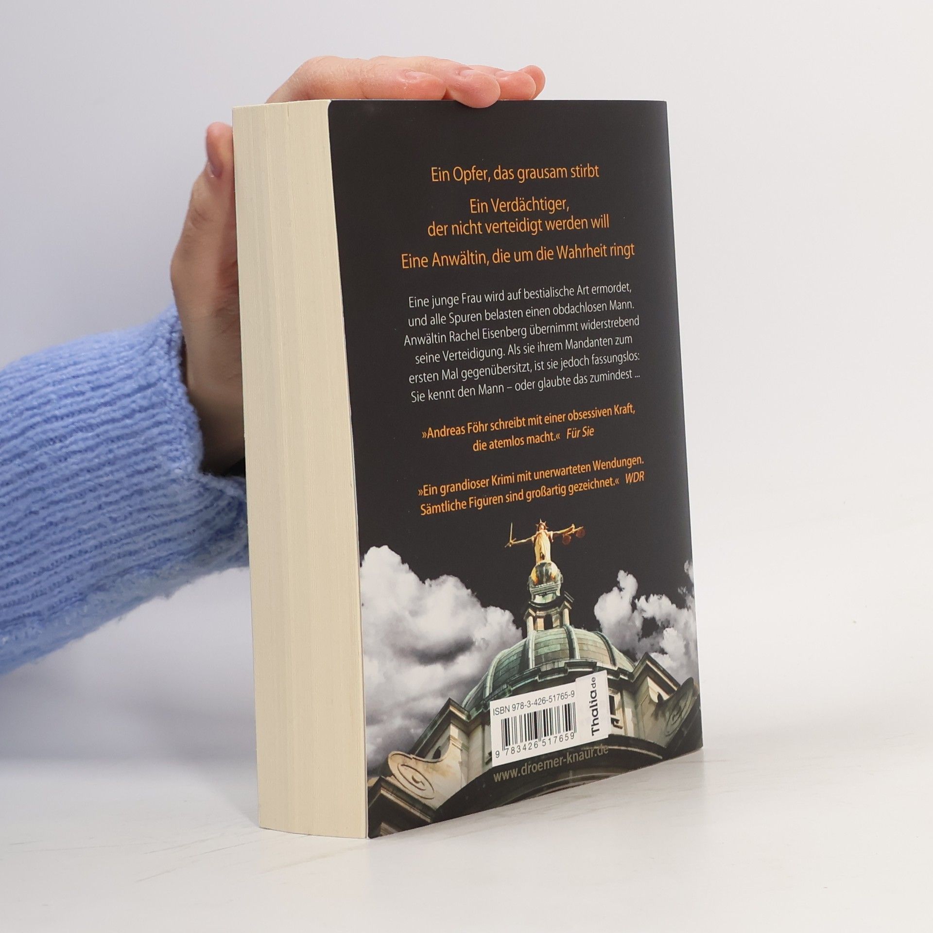 Die toughe Rechtsanwältin Rachel Eisenberg hat die Leser und Bestsellerlisten im Sturm erobert. Der promovierte Jurist Andreas Föhr, bekannt für seine erfolgreiche Serie um das Tegernseer Ermittler-Duo Wallner & Kreuthner, präsentiert mit „Eisenberg“ einen hochspannenden Justiz-Krimi und den Auftakt einer neuen Serie, der begeisterte Reaktionen in der Presse und bei den Lesern auslöste. Jahrelang als Anwalt tätig, hat Föhr mit Rachel Eisenberg eine Figur geschaffen, die sein juristisches Fachwissen und den Glauben an die Verteidigung jedes Mandanten verkörpert. Dr. Rachel Eisenberg ist fassungslos, als sie ihrem neuen Mandanten, einem Obdachlosen, der eines gewalttätigen Mordes verdächtigt wird, gegenübersitzt und erkennt, dass es sich um Professor Heiko Gerlach handelt, ihre große Liebe aus vergangenen Tagen. Sie kann nicht glauben, dass der Mann, mit dem sie zwei Jahre lang zusammen war, zu solch einer Tat fähig sein soll. Doch die Beweise sprechen gegen ihn, und Gerlach legt schließlich ein Geständnis ab und entzieht Rachel das Mandat. Ist er wirklich so unschuldig, wie sie glaubt? Der Krimi überzeugt durch einen raffinierten Plot, unerwartete Wendungen und eine starke Frauenfigur, die für fesselndes, atemloses Lesevergnügen sorgt.