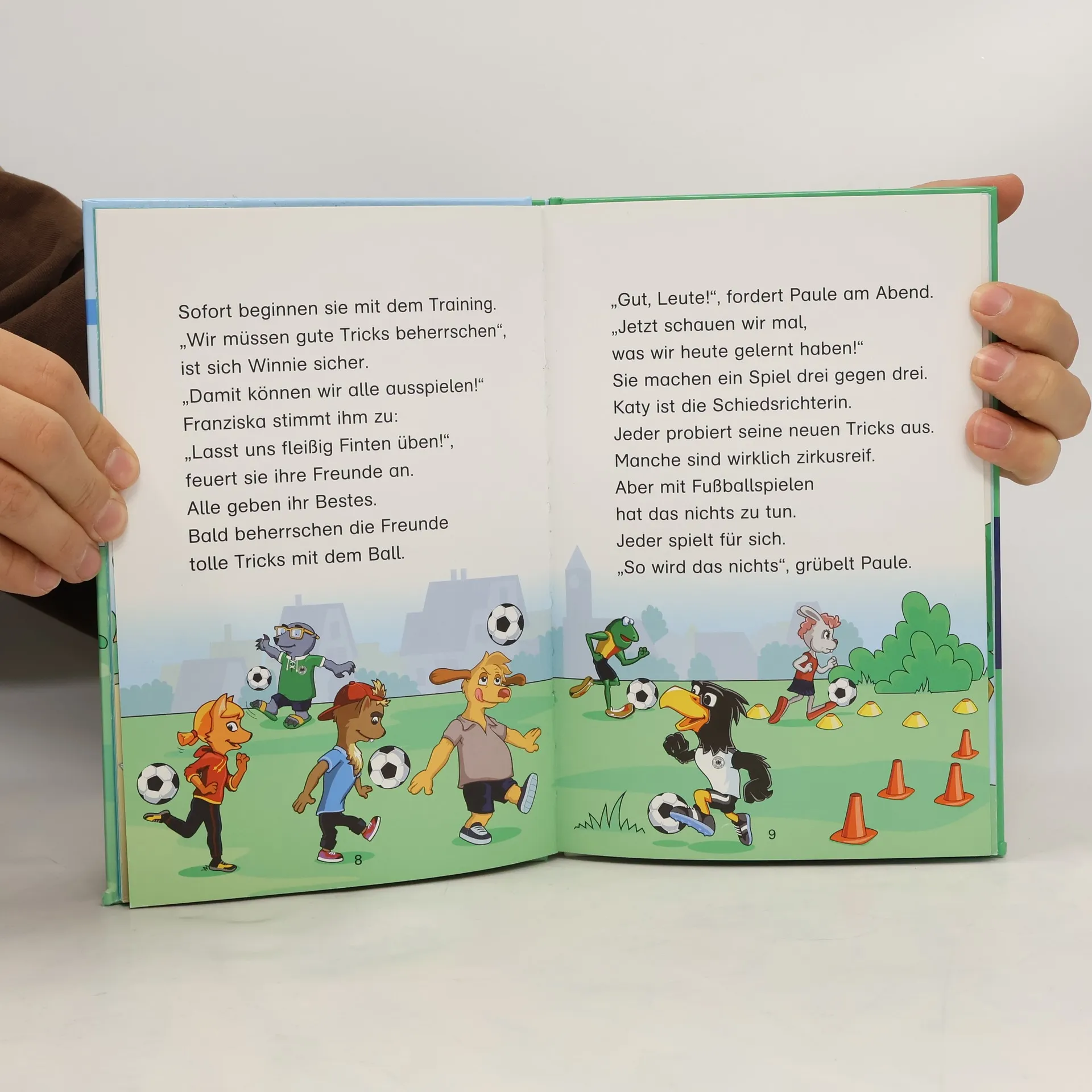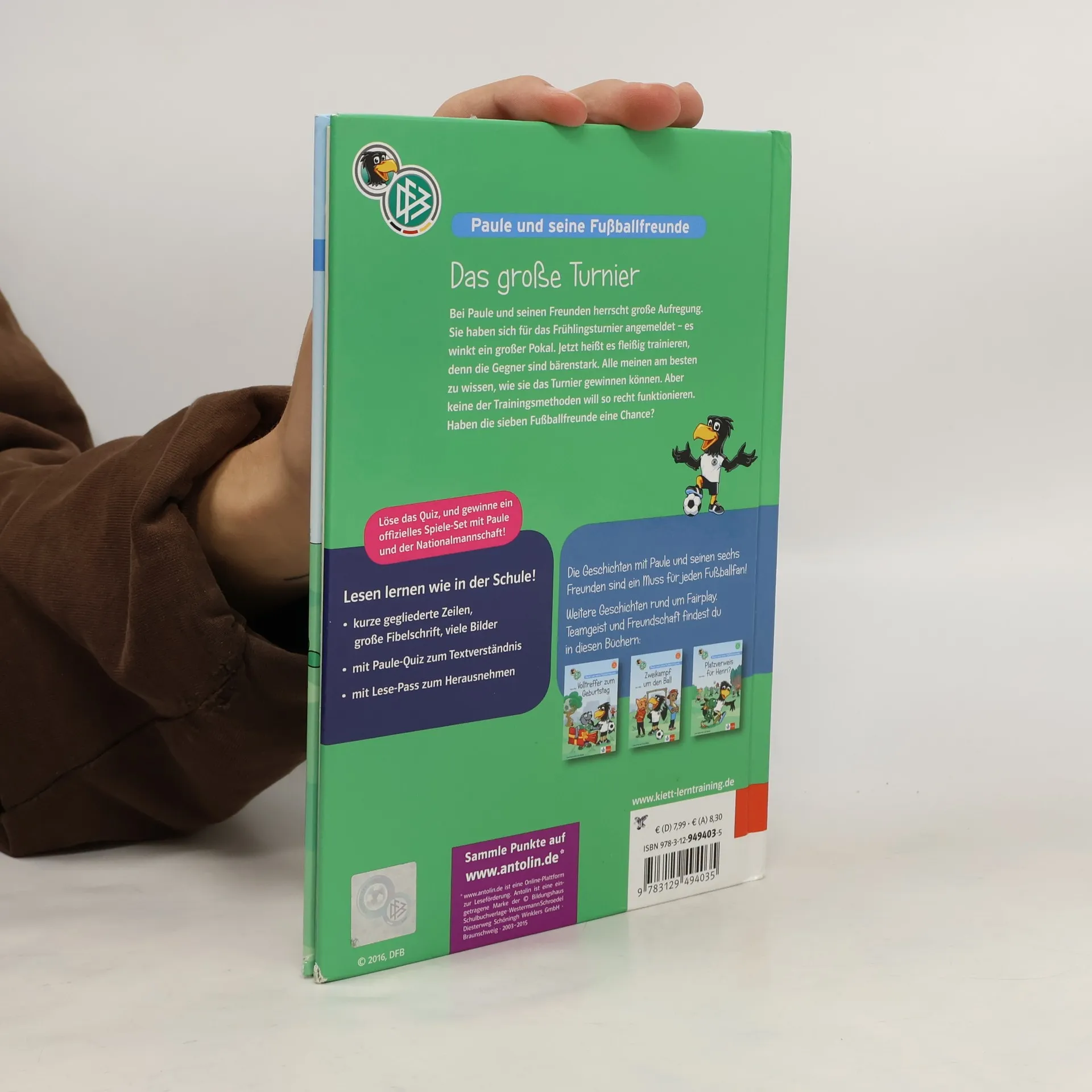 „Bei Paule und seinen Freunden herrscht große Aufregung. Sie sind zum Frühlingsturnier eingeladen – es winkt ein großer Pokal. Jetzt heißt es fleißig trainieren, denn die Gegner sind bärenstark. Alle meinen am besten zu wissen, wie sie das Turnier ge winnen können. Aber keine der Trainingsmethoden will so recht funktionieren … Haben die sieben Fußballfreunde eine Chance? Lerne lesen mit den Geschichten rund um Paule und seine Fußballfreunde! Spannende Geschichten mit dem offiziellen Maskottchen des Deutschen Fußball-Bundes sorgen für besten Erstlese-Spaß. Außerdem: ein Fußball-Quiz zur spielerischen Überprüfung des Leseverständnisses. Extra: Mit Lese-Pass zum Ausschneiden und Eintragen der täglichen Lese-Portion.“