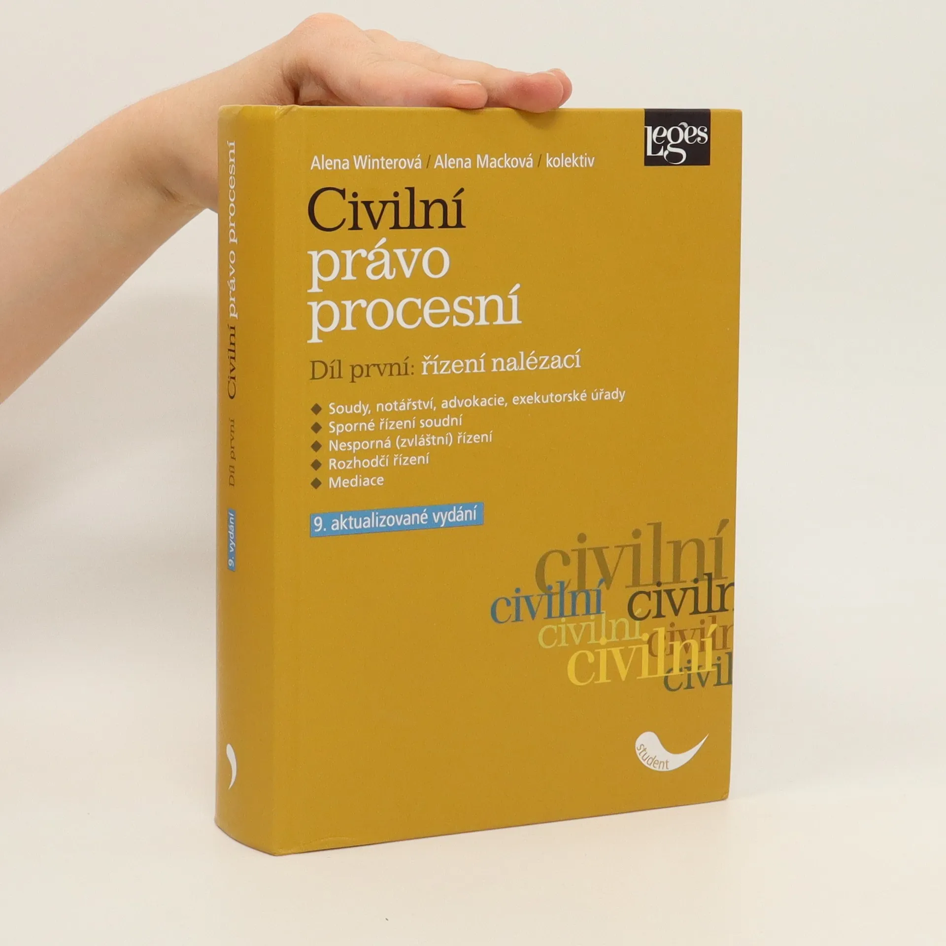 Učebnice přináší výklad základních principů a institutů civilního procesu nalézacího. Reaguje především na významné principiální změny právní úpravy civilního procesního práva, které odrážejí změny v právu hmotném, současně však zahrnuje i změny jiné povahy. První díl je věnován řízení nalézacímu. Obsahuje výklady řízení sporného i nesporného a výklady alternativního řešení sporů v České republice.