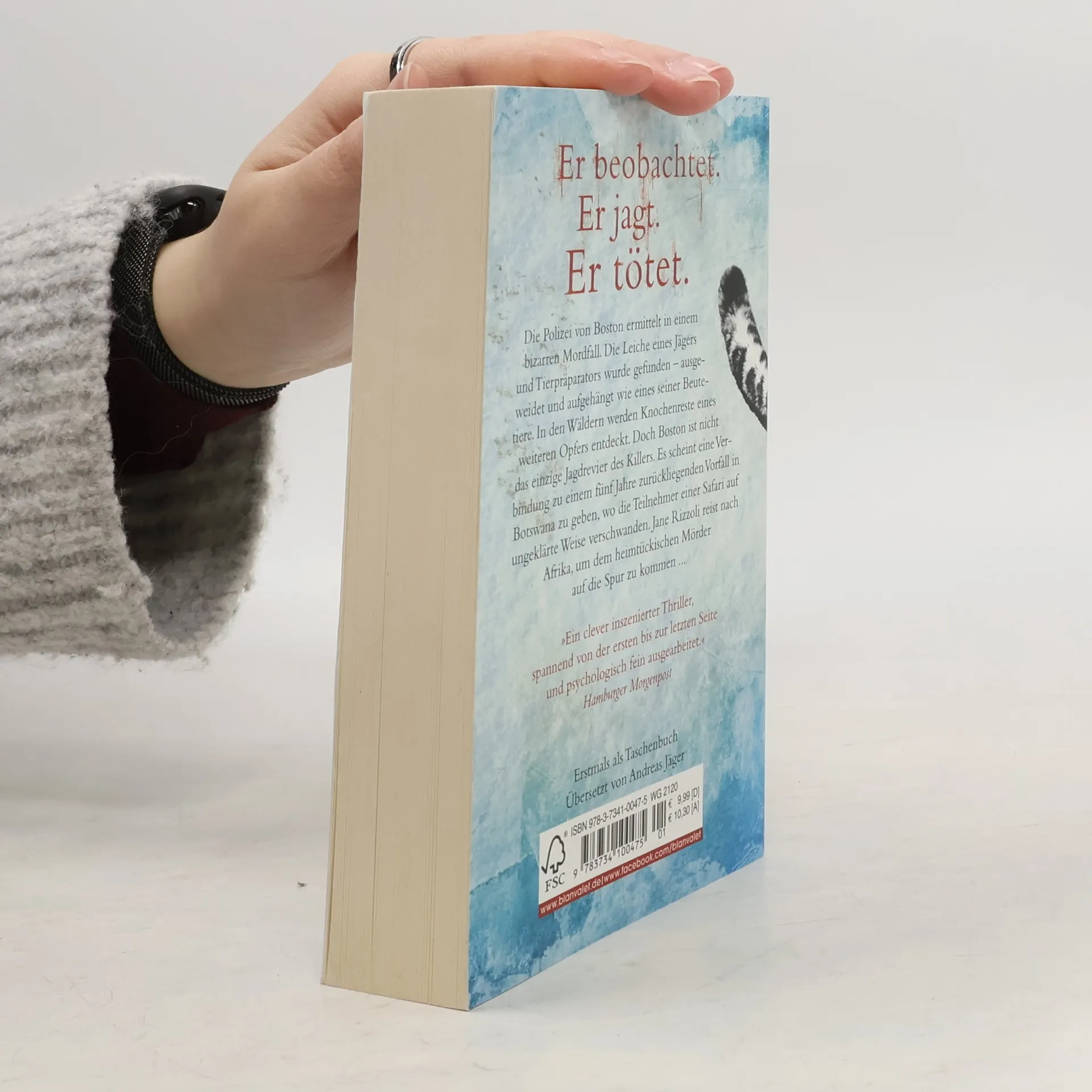 Der Schneeleopard beobachtet, er jagt – er tötet Die Polizei von Boston ermittelt in einem bizarren Mordfall. Die Leiche eines Jägers und Tierpräparators wurde gefunden – ausgeweidet und aufgehängt wie eines seiner Beutetiere. In den Wäldern werden Knochenreste eines weiteren Opfers entdeckt. Doch Boston ist nicht das einzige Jagdrevier des Killers. Es scheint eine Verbindung zu einem fünf Jahre zurückliegenden Vorfall in Botswana zu geben, wo die Teilnehmer einer Safari auf ungeklärte Weise verschwanden. Jane Rizzoli reist nach Afrika, um dem heimtückischen Mörder auf die Spur zu kommen ...