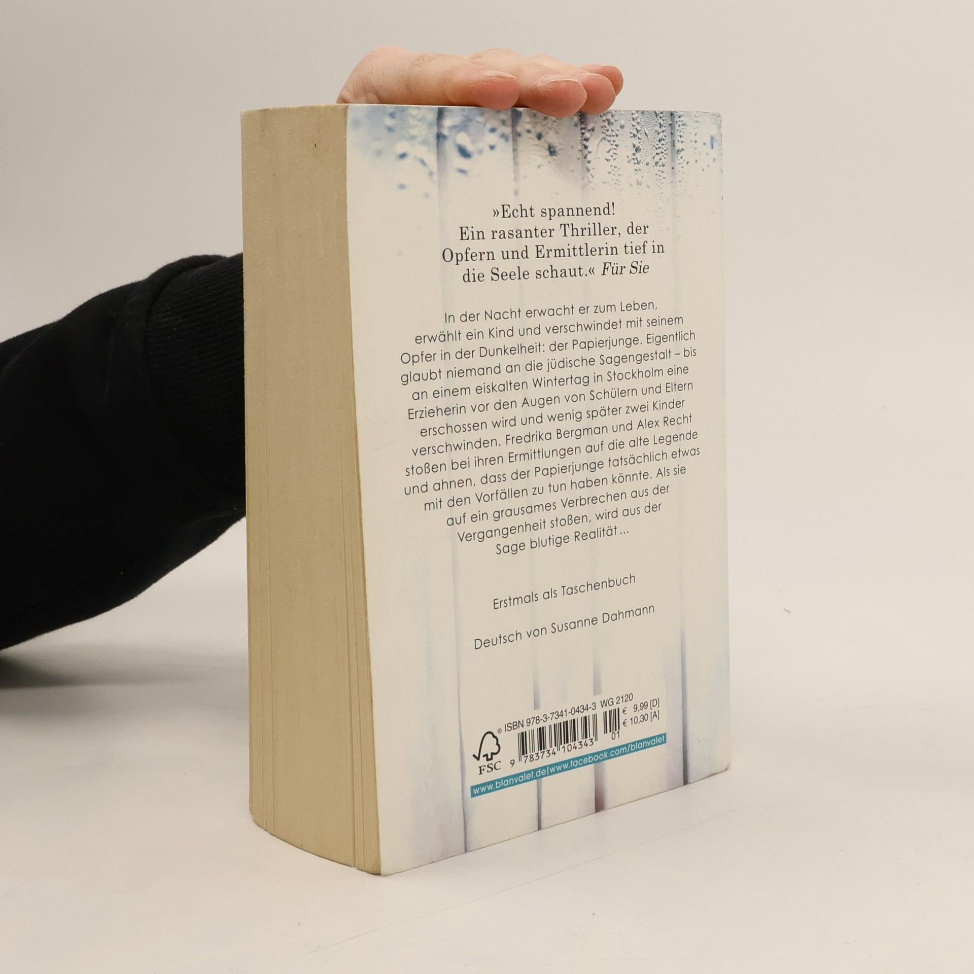 Ein Lehrer wird ermordet. Zwei Kinder verschwinden. Eine düstere Legende erwacht zum Leben. In der Nacht erwacht er zum Leben, erwählt ein Kind und verschwindet mit seinem Opfer in der Dunkelheit. Der Papierjunge. Eigentlich glaubt niemand an die jüdische Sagengestalt – bis an einem eiskalten Wintertag in Stockholm eine Erzieherin vor den Augen von Schülern und Eltern erschossen wird. Als wenig später zwei Kinder verschwinden, fragen sich die Ermittler Fredrika Bergman und Alex Recht, ob der Junge aus der Legende etwas mit den Vorfällen zu tun haben könnte. Die Ermittlungen führen Fredrika nach Israel, wo sie mit einem grausamen Verbrechen aus der Vergangenheit konfrontiert wird ...