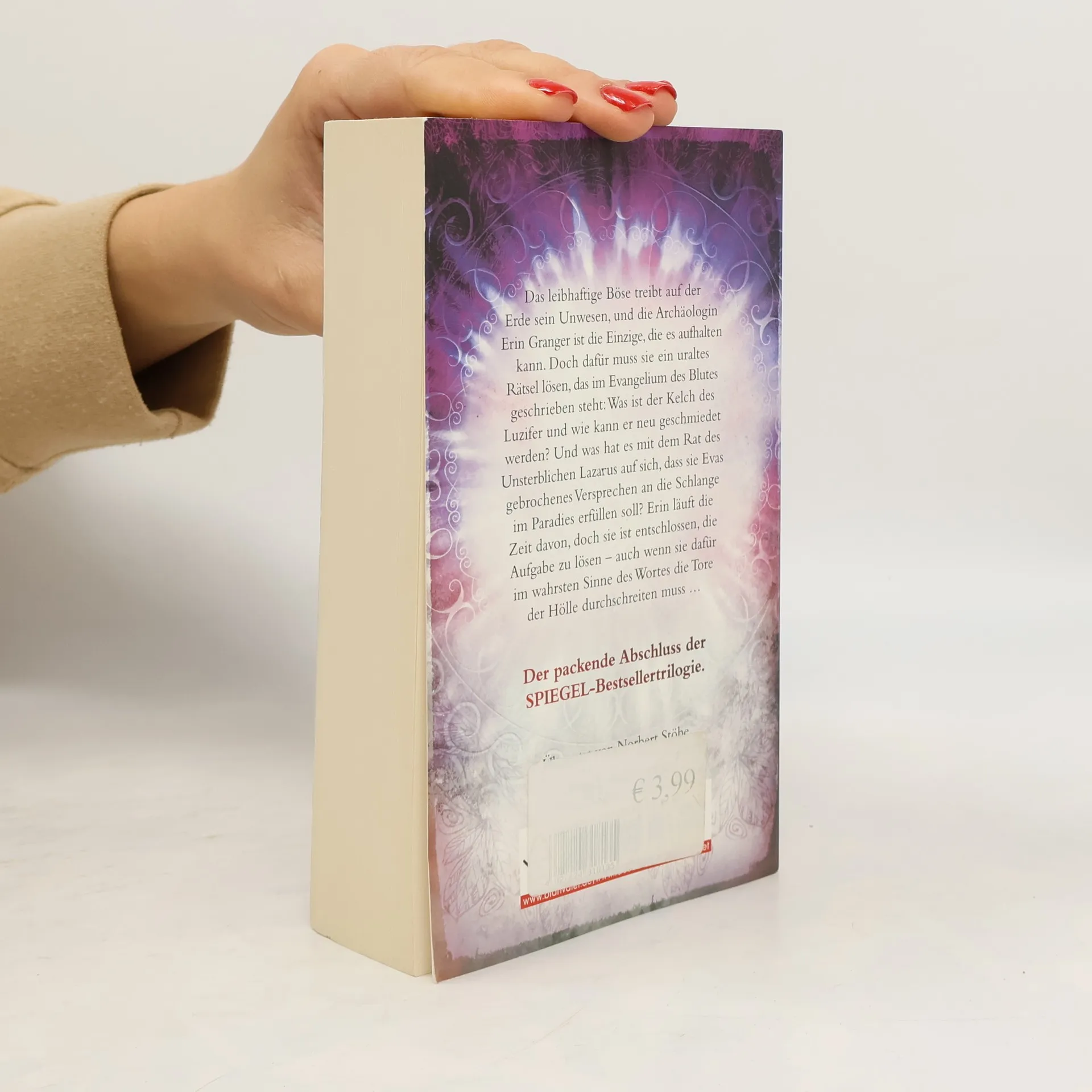 Das leibhaftige Böse treibt auf der Erde sein Unwesen, und die Archäologin Erin Granger ist die Einzige, die es aufhalten kann. Doch dafür muss sie ein uraltes Rätsel lösen, das im Evangelium des Blutes geschrieben steht: Was ist der Kelch des Luzifer und wie kann er neu geschmiedet werden? Und was hat es mit dem Rat des Unsterblichen Lazarus auf sich, dass sie Evas gebrochenes Versprechen an die Schlange im Paradies erfüllen soll? Erin läuft die Zeit davon, doch sie ist entschlossen, die Aufgabe zu lösen – auch wenn sie dafür im wahrsten Sinne des Wortes die Tore der Hölle durchschreiten muss …