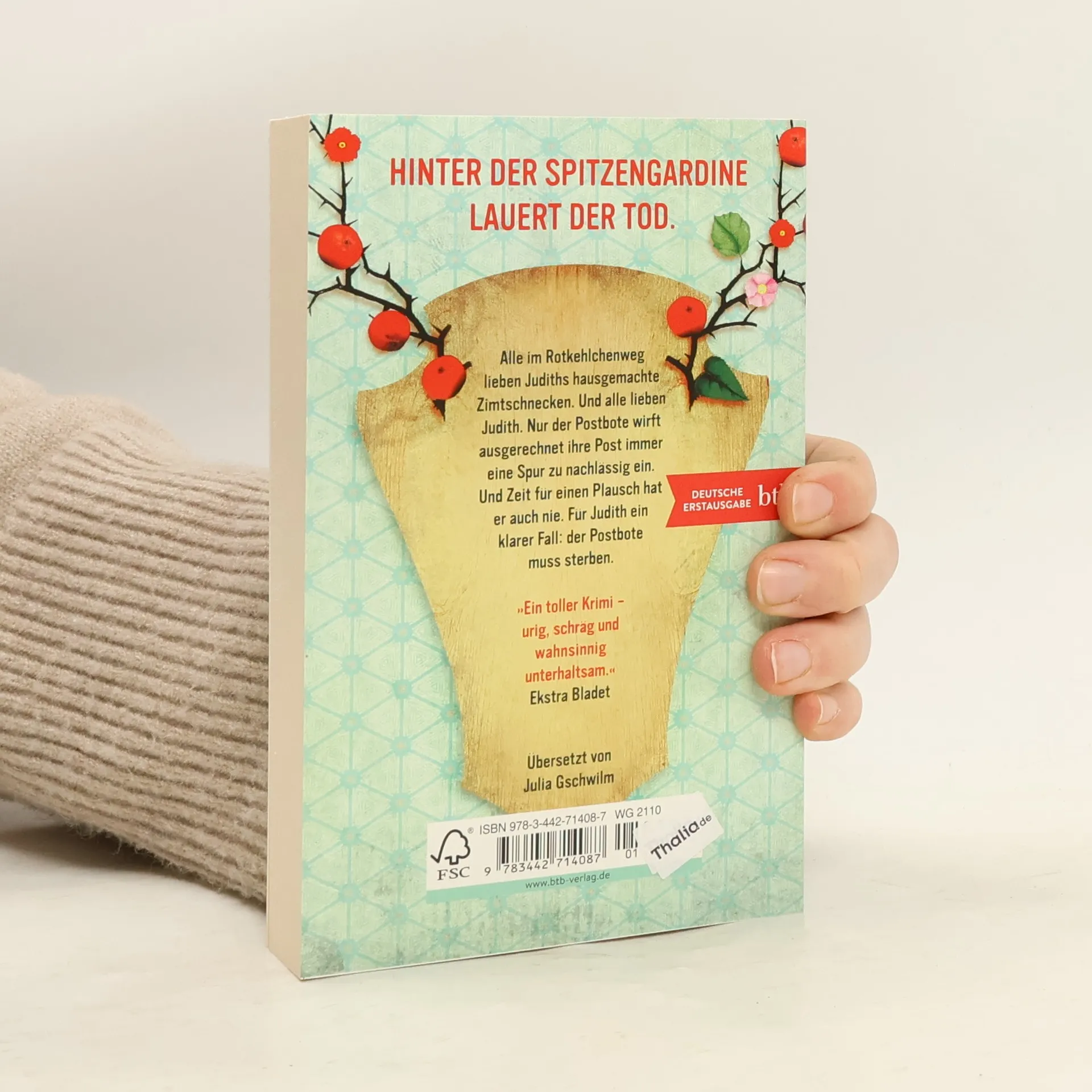 Judith Behring ist eine alte Dame, eine ungemein reizende alte Dame. Im ganzen Rotkehlchenweg ist sie bekannt für ihre Gastfreundschaft und ihre Backkünste – die Nachbarn können sich glücklich schätzen, wenn sie in den Genuss von Judiths berühmten Zimtschnecken kommen. Nur einer ist nicht so nett zu Judith, wie sie das gewohnt ist: der Postbote. Wie unachtsam der immer ausgerechnet ihre Post in den Briefkasten stopft… Und Zeit für einen netten Plausch hat er auch nie… Deshalb steht für Judith fest: Der Postbote muss sterben! Gut, dass sie nicht nur früher eine preisgekrönte Metzgerin war, sondern auch Erfahrung im Loswerden ungeliebter Mitmenschen hat.