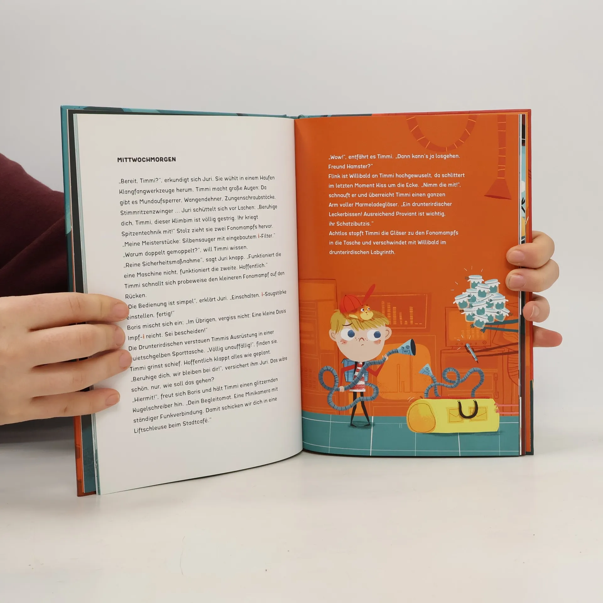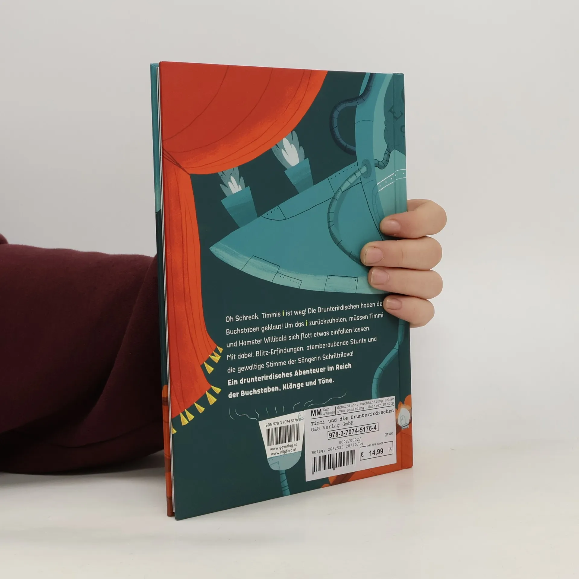 Oh Schreck, Timmis I ist verschwunden! Aber w-e kann ein Buchstabe verloren gehen? Und woh-n? Ganz einfach: Die Drunterirdischen haben Timmis I geklaut! Jetzt ist der Buchstabe sehr geschwächt und muss dringend repariert werden. Denn was wäre T-mm- Zw-nz ohne sein I? Also auf zur rasenden Rettungsmission, inklusive High-Tech-Blitz-Erfindungen, atemberaubenden Stunts und dem glitzernden hohen Gis der Sängerin Schriltrilova! Melanie Laibl und Maria Karipidou schicken Timmi, Hamster Willibald und die Drunterirdischen auf ein turbulentes Abenteuer im Reich der Buchstaben, Klänge und Töne.