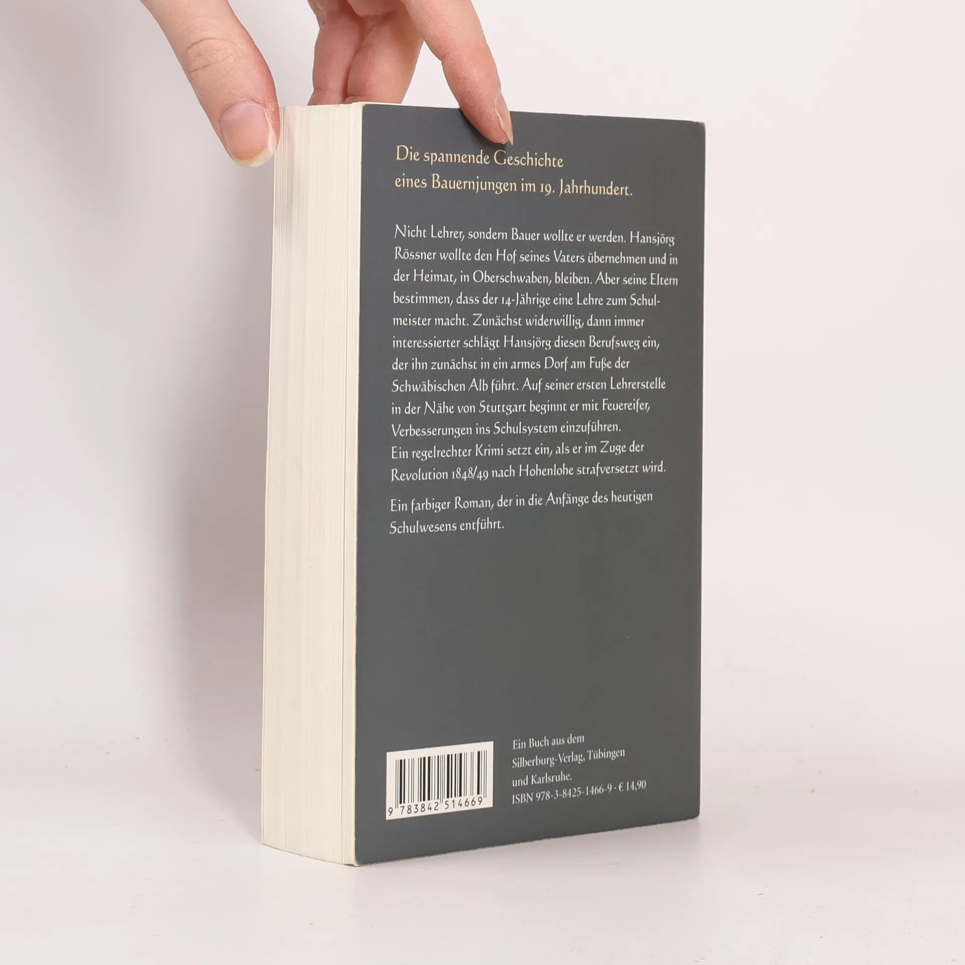 Der junge Hansjörg Rössner wollte den Hof des Vaters übernehmen, Bauer werden und in seiner Heimat, in Oberschwaben, bleiben. Doch kurz vor seiner Schulentlassung im März 1842 erfährt der 14-Jährige: Seine Eltern verfügen, dass er eine Lehre zum Schulmeister absolviert. Zunächst widerwillig, dann immer interessierter schlägt Hansjörg diesen Berufsweg ein, der ihn in ein Lehrerseminar am Fuße der Schwäbischen Alb führt. Mit viel Phantasie und Engagement setzt der Junglehrer die neuen, ganzheitlichen Erziehungsmethoden Pestalozzis in der dortigen Armenschule und auf seiner ersten Lehrerstelle auf den Fildern um. Doch den konservativen Kirchenoberen sind seine Ideen zu liberal und so versetzen sie ihn in den Wirren der Revolution 1848/49 ins Hohenlohische. Ein regelrechter Krimi setzt ein, als der junge Lehrer in Kirchenarchiven alte Dokumente entdeckt und er feststellen muss, dass sich um die Umstände seiner eigenen Herkunft ein düsteres Geheimnis rankt … Ein farbiger, kenntnisreich geschriebener Roman, der den Leser in das württembergische Leben vor 150 Jahren und in die Anfänge des heutigen Schulwesens entführt.