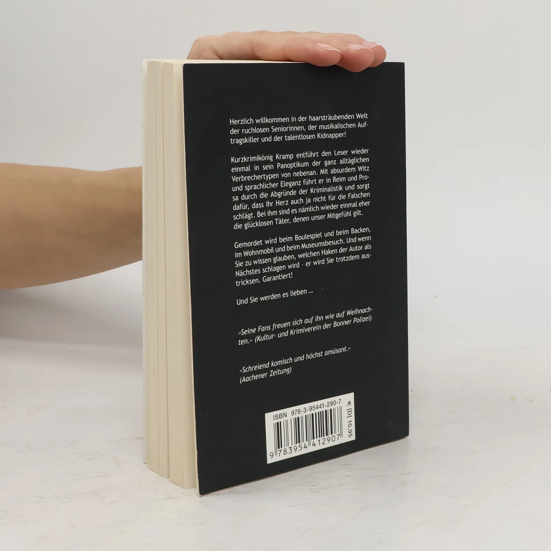 Kurzkrimi-König Kramp − Neue mörderische Streiche des notorischen Wiederholungstäters aus der Eifel. Herzlich willkommen in der haarsträubenden Welt der ruchlosen Seniorinnen, der musikalischen Auftragskiller und der talentlosen Kidnapper! Ralf Kramp entführt den Leser wieder einmal in sein Panoptikum der ganz alltäglichen Verbrechertypen von nebenan. Mit absurdem Witz und sprachlicher Eleganz führt er in Reim und Prosa durch die Abgründe der Kriminalistik und sorgt dafür, dass Ihr Herz auch ja nicht für die Falschen schlägt. Bei ihm sind es nämlich wieder einmal eher die glücklosen Täter, denen unser Mitgefühl gilt. Gemordet wird beim Boulespiel und beim Backen, im Wohnmobil und beim Museumsbesuch. Und wenn Sie nach Ralf Kramps bisherigen fünf Kurzkrimibänden zu wissen glauben, welchen Haken der Autor als Nächstes schlagen wird – er wird Sie trotzdem austricksen. Garantiert! Und Sie werden es lieben …