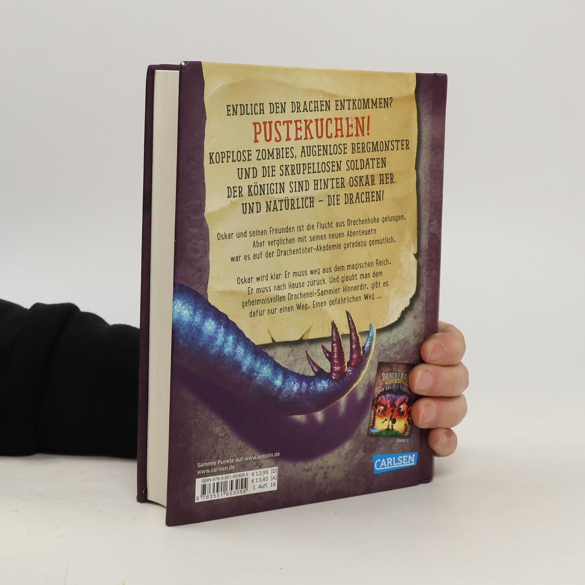 Ein unbesiegbarer Held? Das ist Oskar eher nicht. Er ist ein ganz normaler Junge mit Mathehausaufgaben. Und plötzlich Drachentöter. *** Oskar und seinen Freunden ist die Flucht aus der Drachentöter-Akademie gelungen. Endlich in Sicherheit. Oder? Pustekuchen! Kopflose Zombies, augenlose Bergmonster und die skrupellosen Soldaten der Königin sind hinter Oskar her. Und natürlich – die Drachen! Verglichen mit seinen neuen Abenteuern war es auf der Drachentöter-Schule geradezu gemütlich. Oskar wird klar: Er muss weg aus dem magischen Reich. Er muss zurück nach Hause. Und glaubt man dem geheimnisvollen Drachenei-Sammler Hinnerdir, gibt es dafür nur einen Weg. Einen gefährlichen Weg ... *** Drachen, Freundschaft, Witz und Abenteuer - der großartige zweite Teil einer einzigartigen Fantasy-Trilogie! Viel Tempo, viel Spaß und eine Menge unvorhergesehener, überraschender Wendungen ... *** „Ungemein spannende Abenteuer-Fantasy!“ (Eselsohr) „Spritzig und packend!“ (kilifü)