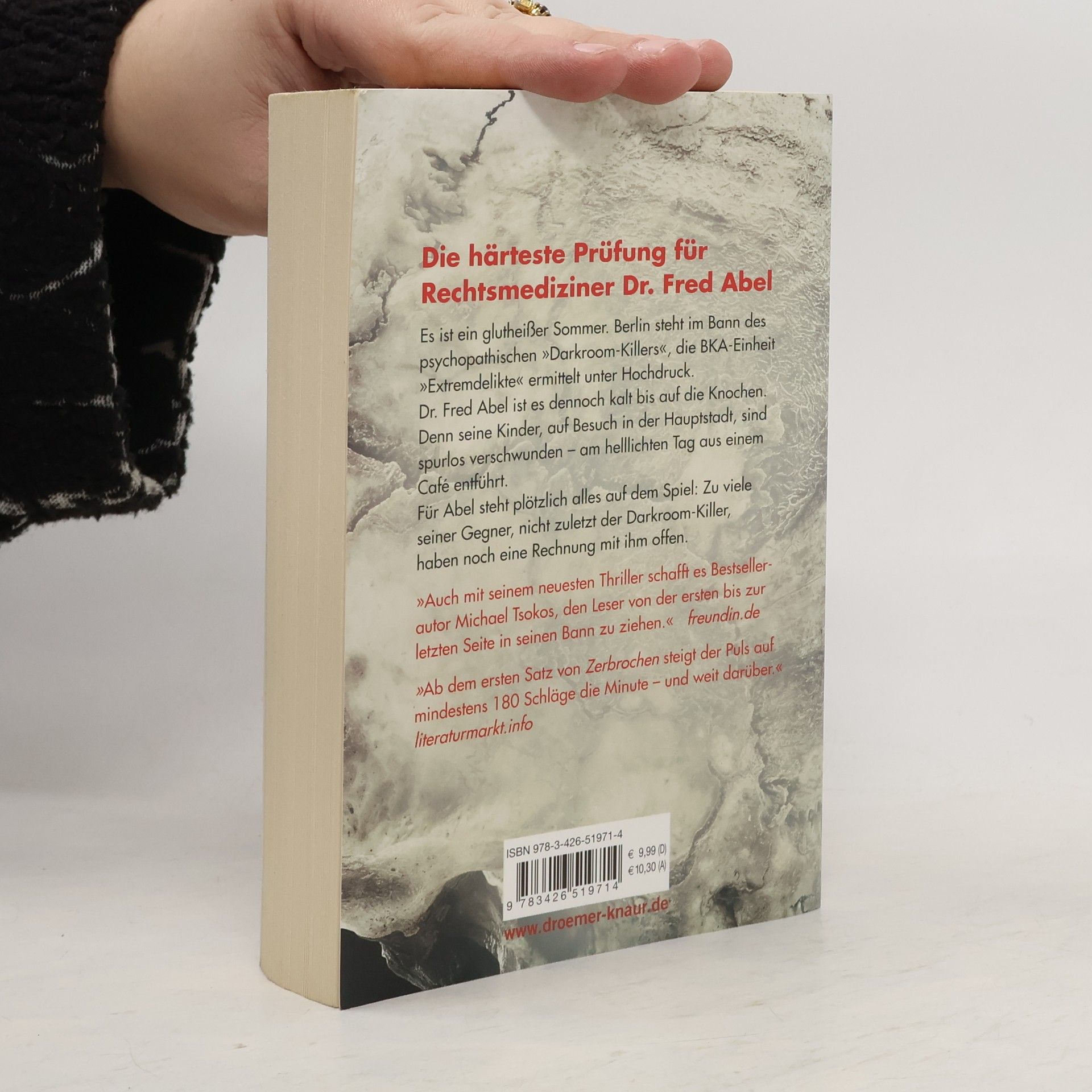 Jetzt im Taschenbuch: Teil 3 der True-Crime-Trilogie der SPIEGEL-Bestseller-Autoren Michael Tsokos und Andreas Gößling – basierend auf echten Fällen, authentischen Ermittlungen und der jahrelangen Erfahrung des bekanntesten deutschen Rechtsmediziners. Ein besonderer Tag für Rechtsmediziner Dr. Fred Abel: Viele Monate, nachdem er bei einem brutalen Überfall fast zu Tode kam, tritt er erstmals wieder seinen Dienst an. Sofort wird er vom täglichen Wahnsinn der BKA-Einheit »Extremdelikte« in Beschlag genommen: Der sogenannte »Darkroom-Killer«, ein Psychopath ohne Skrupel, hält Polizei und Bevölkerung in Atem. All dies verblasst jedoch, als Abels gerade neu gefundenes Familienglück auf dem Spiel steht: Seine 16-jährigen Zwillinge, Kinder aus einer längst vergangenen Affäre, besuchen ihn in Berlin – und werden Opfer einer Entführung. Wer hat mit Abel noch eine Rechnung offen? „Ab dem ersten Satz von “Zerbrochen„ steigt der Puls auf mindestens 180 Schläge die Minute - und weit darüber!“ literaturmarkt. info