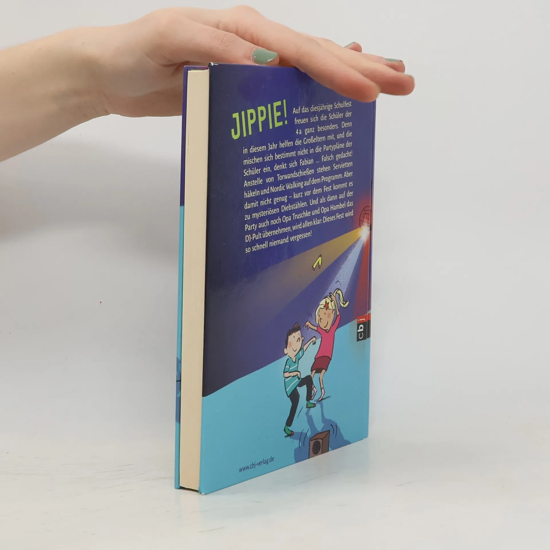 JIPPIE! Auf das diesjährige Schulfest freuen sich die Schüler der 4a ganz besonders. Es sind nicht die Lehrer oder Eltern, die bei dem Fest mithelfen, sondern die Großeltern, und die mischen sich bestimmt nicht in die Partypläne der Schüler ein, denkt sich Fabian ... Falsch gedacht! Anstelle von Torwandschießen oder Eierlauf stehen Servietten häkeln und Walken mit Stöcken auf dem Programm. Als dann noch Herr Truschke und Herr Hambel das DJ-Pult der Schuldisco übernehmen und zum Walzer aufrufen, wird allen klar: Dieses Fest wird so schnell niemand vergessen ... Ausstattung: Mit s/w Illustrationen