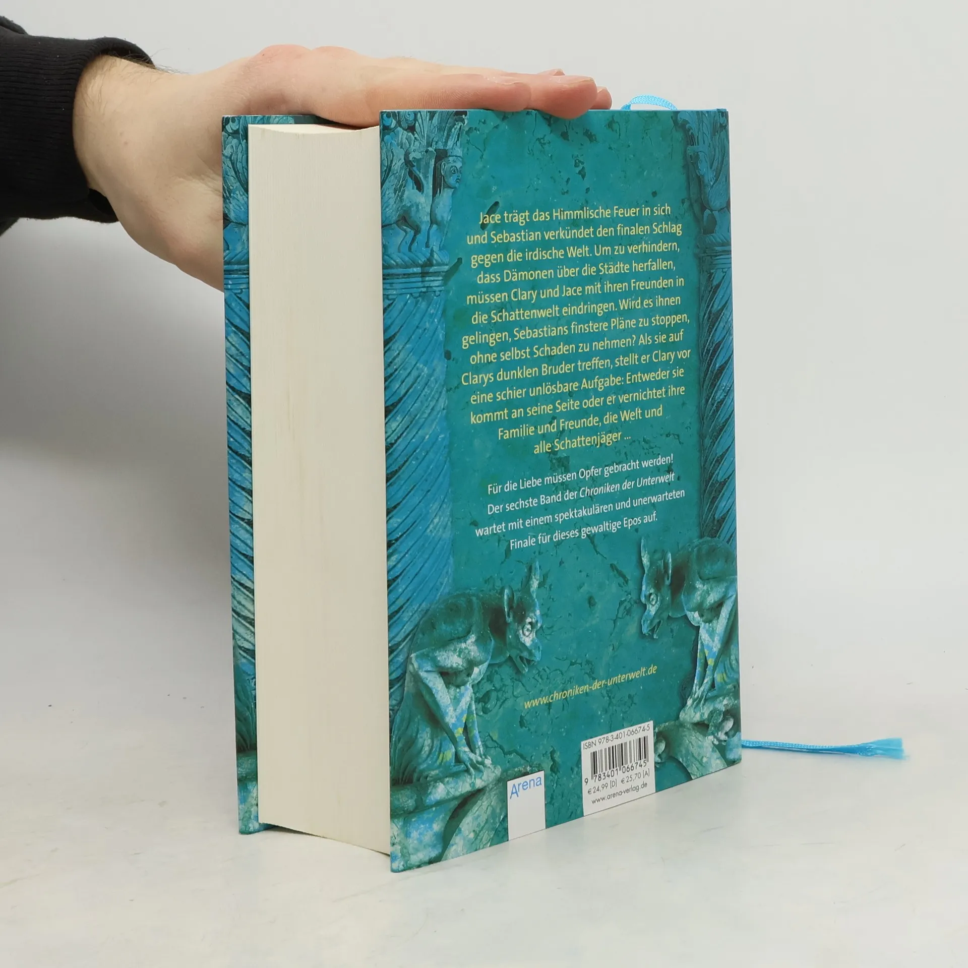 Jace trägt das Himmlische Feuer in sich und Sebastian verkündet den finalen Schlag gegen die irdische Welt. Um zu verhindern, dass Dämonen über die Städte herfallen, müssen Clary und Jace mit ihren Freunden in die Schattenwelt eindringen. Wird es ihnen gelingen, Sebastians finstere Pläne zu stoppen, ohne selbst Schaden zu nehmen? Als sie auf Clarys dunklen Bruder treffen, stellt er Clary vor eine schier unlösbare Aufgabe: Entweder sie kommt an seine Seite oder er vernichtet ihre Familie und Freunde, die Welt und alle Schattenjäger … Für die Liebe müssen Opfer gebracht werden. Der sechste Band der Chroniken der Unterwelt wartet mit einem spektakulären und unerwarteten Finale für dieses gewaltige Epos auf.