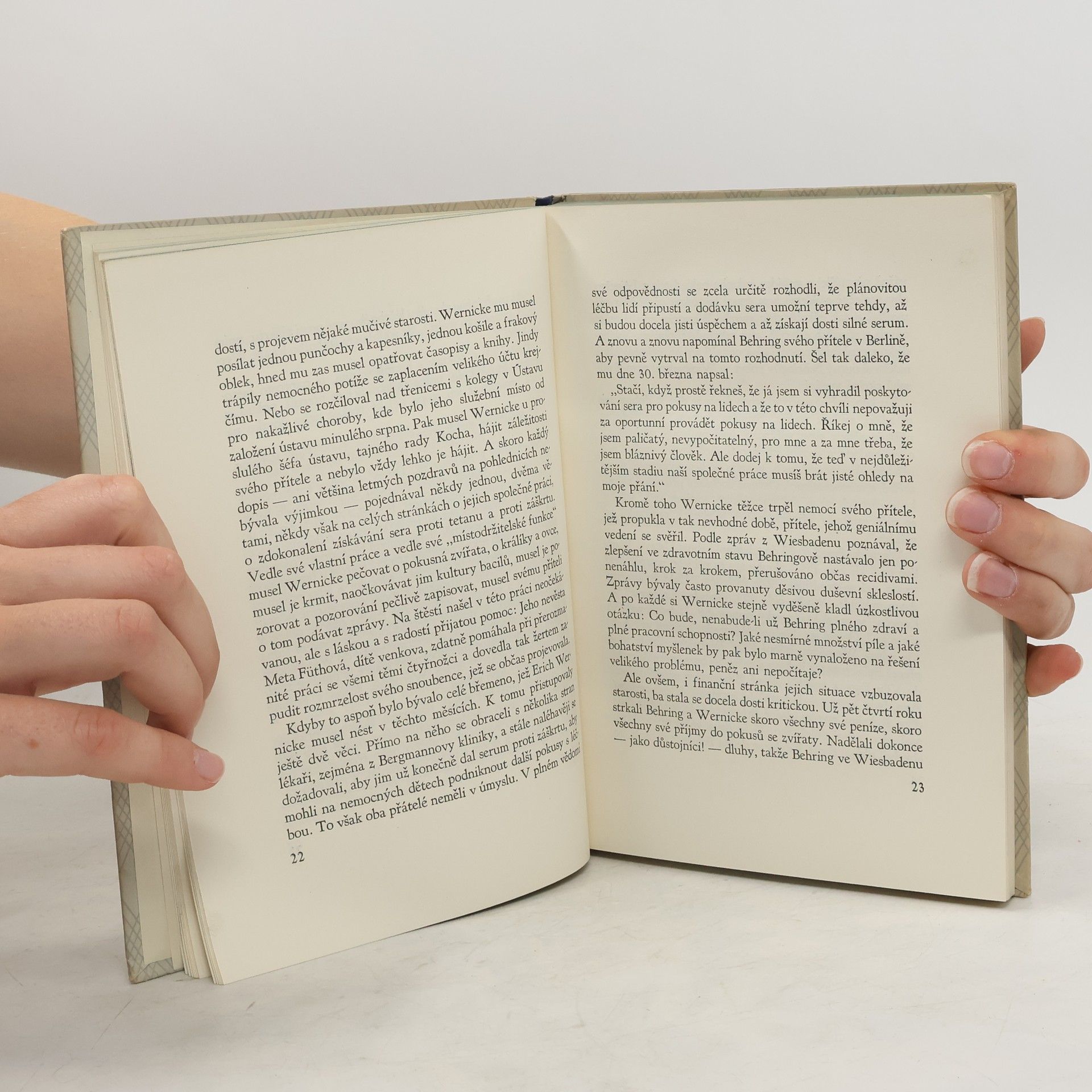 Emil Adolf von Behring (* 15. 3. 1854, Hansdorf, Německo – † 31. 3. 1917, Marburg) byl německý lékař, bakteriolog a fyziolog, jeden ze zakladatelů imunologie a sérologie, objevitel séra proti záškrtu. V roce 1901 sa stal prvním nositelem Nobelovy ceny za fyziologii a medicínu za svůj objev získání séra proti záškrtu imunizací koní. Životopisný román líčí boj tohoto zachránce dětí o prosazení očkování proti záškrtu a zavádění nových léčebných postupů. 14 foto-ilustrací