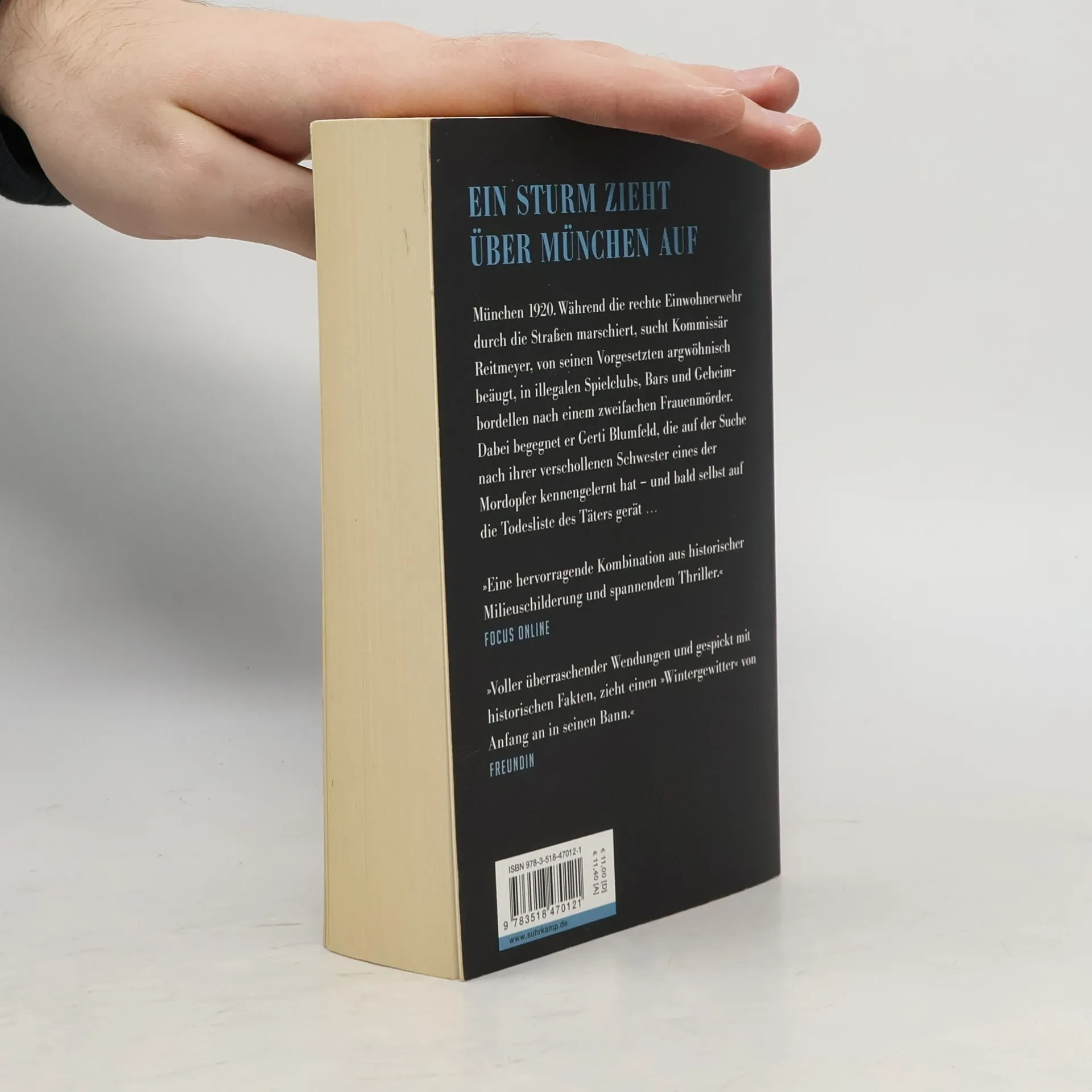 München 1920. Kommissär Reitmeyer ist aus dem Krieg zurückgekehrt, versucht die dort erlittenen Traumata vor seiner Umgebung zu verbergen und dämpft aufkommende Panikattacken mit Geigenspiel. Dabei hat die Polizei alle Hände voll zu tun: Nahrungsmangel und Geldentwertung haben dazu geführt, dass die Stadt von einer regelrechten »Diebstahlseuche« heimgesucht wird und Schieber und Schleichhändler dicke Geschäfte machen. Da wird die junge Cilly Ortlieb, Kleindarstellerin in schlüpfrigen Produktionen des Münchner Filmkonzerns Emelka, tot im Keller einer Gastwirtschaft gefunden. Was zunächst wie ein Unfall aussieht, entpuppt sich als Mord mit einer großen Menge Morphium. Während die rechte Einwohnerwehr durch die Straßen Münchens marschiert, sucht Kommissär Reitmeyer – von seinen Vorgesetzten argwöhnisch beäugt – in illegalen Spielclubs, Bars und Geheimbordellen nach einem zweifachen Frauenmörder. Dabei begegnet er Gerti Blumfeld, die auf der Suche nach ihrer abgetauchten Schwester eines der Mordopfer kennengelernt hat und bald selbst auf die Todesliste des Täters gerät …