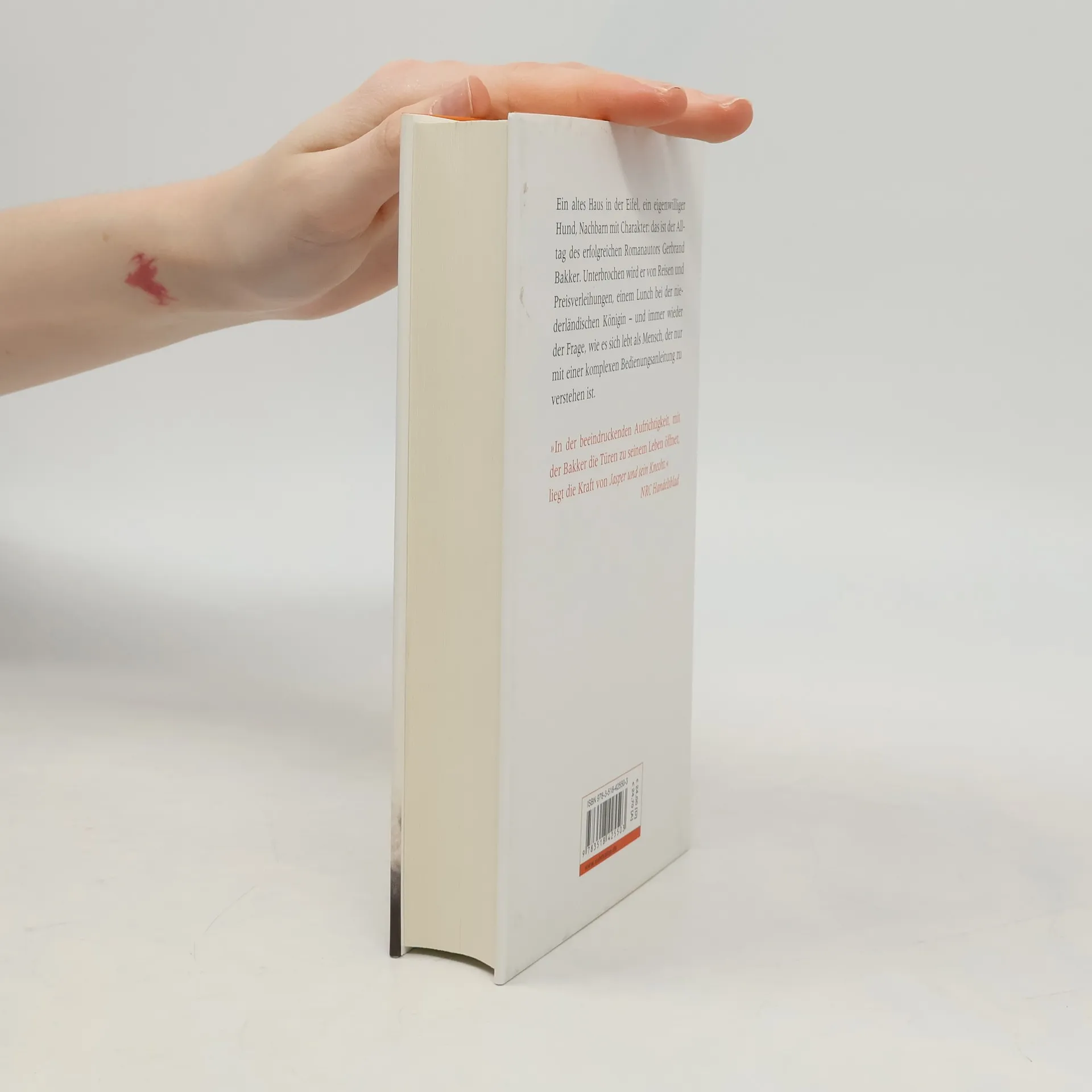 Ein erfolgreicher niederländischer Romanautor kauft ein altes Haus in der Eifel und lässt sich dort mit seinem Hund Jasper nieder. Die Holzöfen ziehen bei Nieselregen schlecht; den Pansen, den der jagende Nachbar für Jasper vorbeibringt, riecht man im ganzen Haus; der Hund ist von ähnlich schwierigem Charakter wie sein Herr, der sich als »von Natur aus depressiv« beschreibt. Warum einen das alles so in den Bann zieht, dass man nicht mehr aufhören möchte zu lesen? Weil Gerbrand Bakker seine Aufzeichnungen subtil verknüpft mit den Erinnerungen an früher, an Opa Bakker und den Bauernhof der Eltern, den verunglückten kleinen Bruder, berufliche Wege und Irrwege, schräge und erhebende Preisverleihungen. Und weil er ein Meister im Einfangen von Stimmungsnuancen ist. Entschleunigend und weise, ohne zu belehren: Gerbrand Bakker schreibt über ein Jahr in der Eifel, über ein Jahr im Leben eines Mannes, der in Romanen wie »Oben ist es still« die Seelen der Menschen auslotet und sich nun einen Blick ins eigene innere Erleben erlaubt – mit packender Ehrlichkeit und unschlagbar trockenem Humor. »Gerbrand Bakker: der Meister der Andeutungen.« KulturSPIEGEL