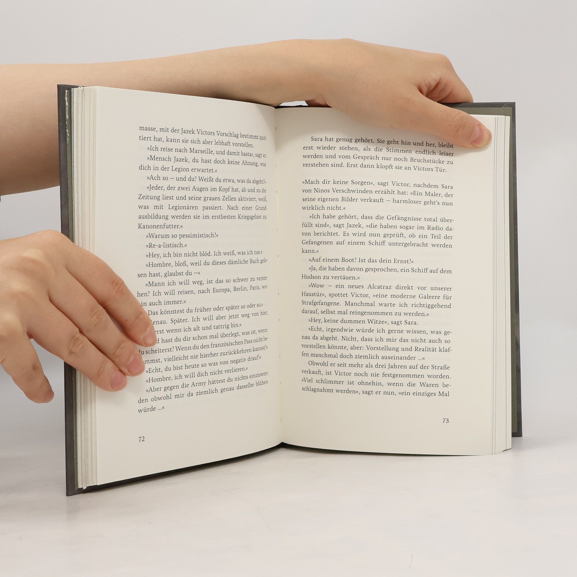 „Vom Fliegen ausser Atem“ erzählt die Geschichte der 18-jährigen Sara, die nach ihrer Ausbildung möglichst weit weg von Zuhause will. Sie landet als Au-Pair in den USA. Das erhoffte Gefühl der Freiheit stellt sich jedoch nicht ein. Als sie den Künstler Nino kennen und lieben lernt, scheint ihr Leben endlich die richtige Wendung zu nehmen. Ihre Reise zu sich selbst hat aber gerade erst begonnen. Annette Lory zeichnet das Porträt einer sensiblen jungen Frau, die immer wieder an ihre Grenzen stösst, fällt, sich aufrappelt und nach Atem ringt, um vielleicht doch noch fliegen zu lernen. Claudia Fellmer und Sabine Hagmann ergänzen die Geschichte mit fotografischen Interpretationen. Sie schaffen mit den Bildbeiträgen einen weiteren Erlebnishorizont der atemraubenden Umwege auf Saras Reise zu sich selbst.