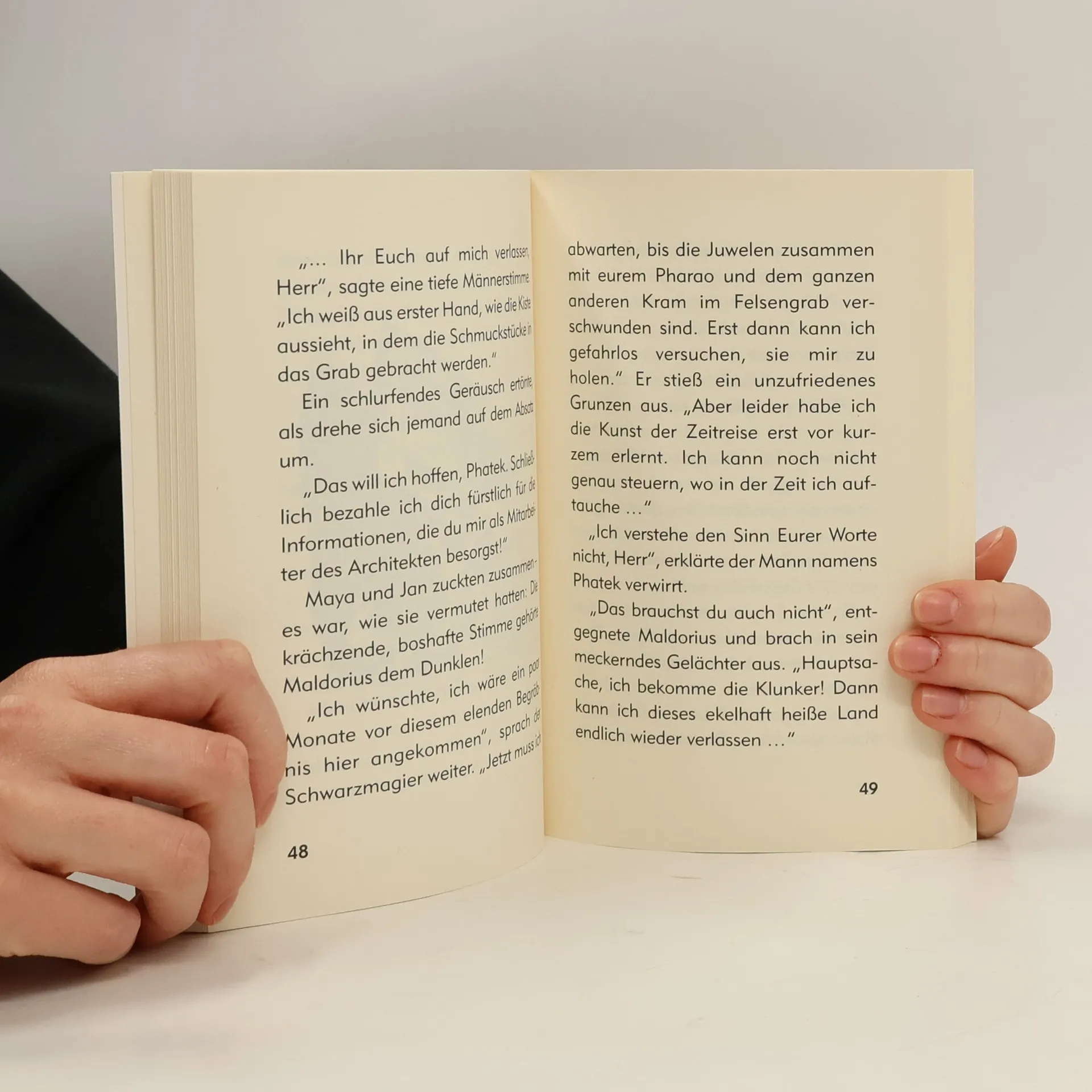 Ein staubiges Tal unter sengender Sonne, flimmernde Luft und hohe, säulenverzierte Tempel: Der magische Stein führt Maya und Jan ins alte Ägypten. Durch ein Versehen geraten sie in ein Felsengrab und werden dort zwischen Gold und Juwelen eingeschlossen. Als sie sich gerade auf die Suche nach einem Ausgang machen wollen, vernehmen sie in der Finsternis der Gruft plötzlich schlurfende Schritte ...§§Begleite Maya und Jan auf ihren abenteuerlichen Reisen quer durch die Zeit. Vergangenheit, Gegenwart, Zukunft - mit dem magischen Stein nur ein paar Buchseiten entfernt!