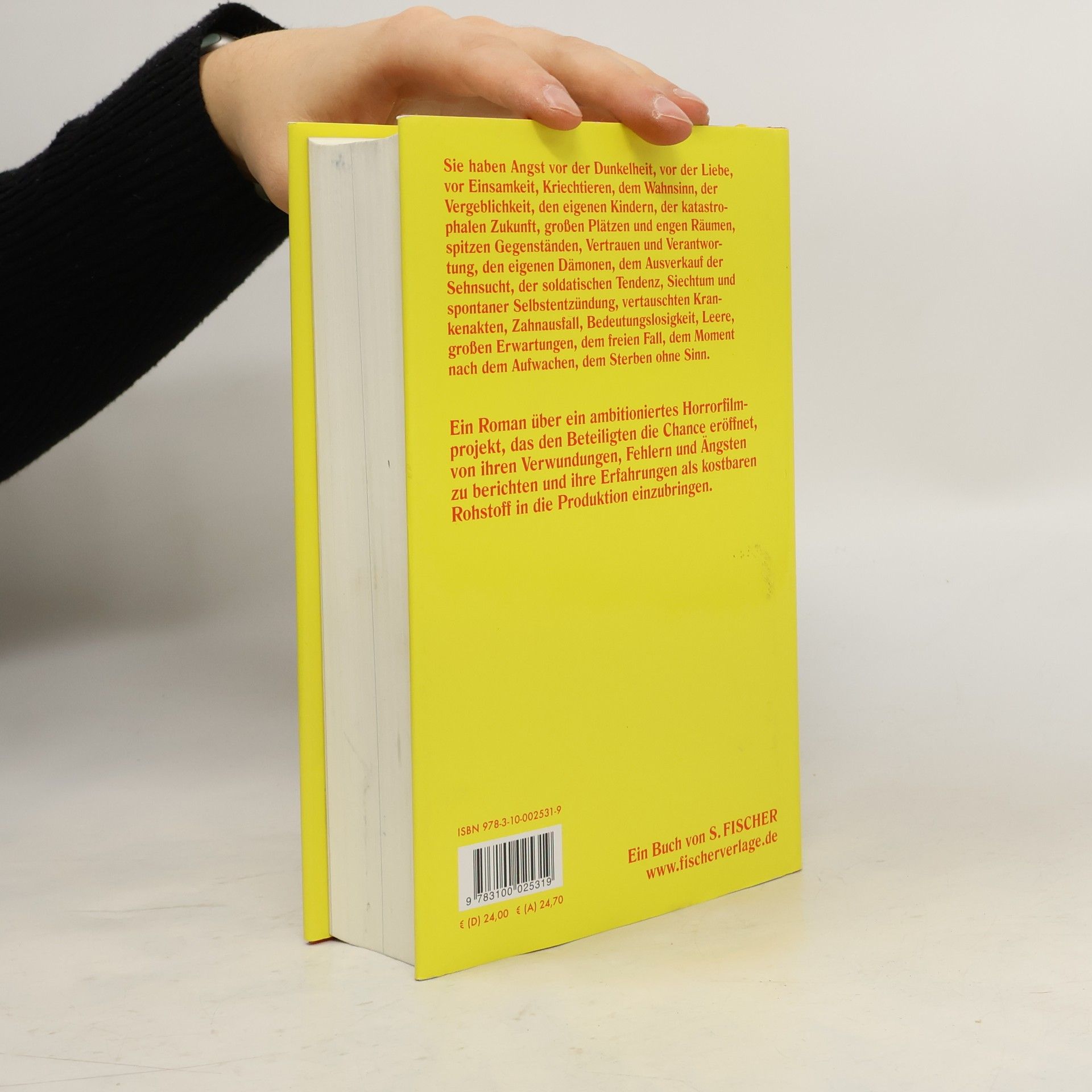 Ein Roman über die Angst als das Lebensgefühl unserer Zeit Sie treffen sich Woche für Woche in einer Kneipe und erzählen sich ihre schlimmsten Ängste. Es ist ein außergewöhnliches Projekt, zu dem Christoph sie alle eingeladen hat. Er ist Regisseur und sie sind Schauspieler, Bühnenbildner, Cutter oder einfach nur Freunde. Sie haben Angst vor der Dunkelheit und der Liebe, vor Einsamkeit und Kriechtieren, vor dem Wahnsinn und vor vertauschten Krankenakten. Aus ihren Geschichten soll das Drehbuch für den Horrorfilm Das schreckliche Grauen entstehen. Nach Monaten der Vorbereitung beginnen schließlich die Dreharbeiten und ihnen wird klar, dass Christophs Ideen viel radikaler sind, als sie bisher dachten.