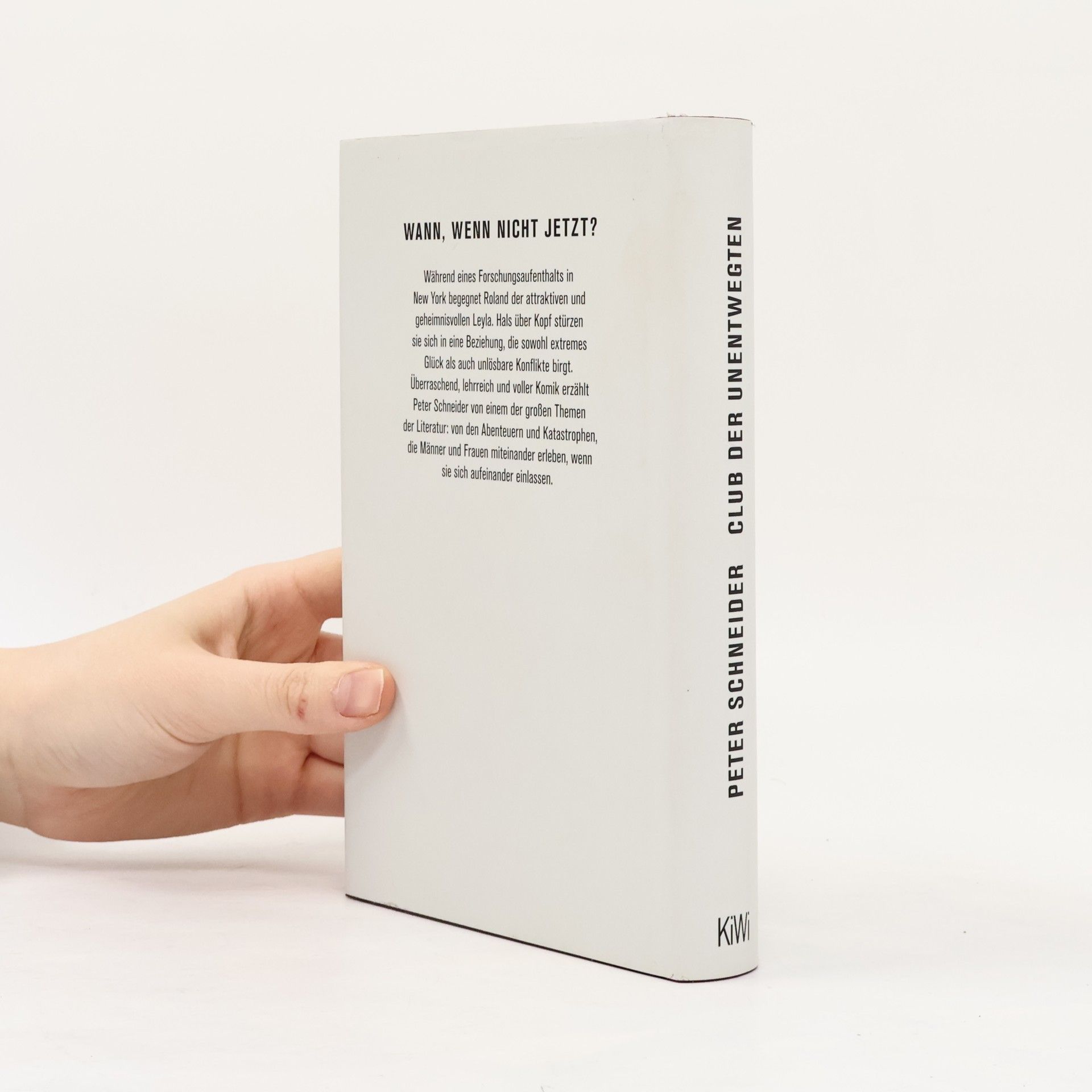 Wann, wenn nicht jetzt? Witwer Roland, ein Privatgelehrter an der NYU, hat Frauen eigentlich abgeschrieben. Doch bei einer Trauerfeier in Manhattan trifft er Leyla, und alles verändert sich. Roland glaubt, die Regeln zu kennen, und ist überzeugt, dass eine Beziehung mit der viel jüngeren Leyla nicht in Frage kommt. Doch sie sieht das anders und zieht ihn in eine Beziehung, die großes Glück, aber auch tiefgreifende Konflikte mit sich bringt. Während er zwischen seinem New Yorker Appartement und seinen Lehrverpflichtungen in Berlin pendelt, hat er Zeit, Leyla zu vermissen, seine Prinzipien zu hinterfragen und über die Liebe nachzudenken. Diese Reflexionen werden durch die Erzählungen seiner Freunde im „Club der Unentwegten“ ergänzt, die ebenfalls von ihren eigenen Liebesabenteuern und -katastrophen berichten. So entfaltet sich ein überraschendes, lehrreiches und unterhaltsames Beziehungspanorama. Peter Schneider behandelt in dieser Geschichte die komplexen Verhältnisse zwischen Männern und Frauen und zeigt, was passiert, wenn sie sich aufeinander einlassen.