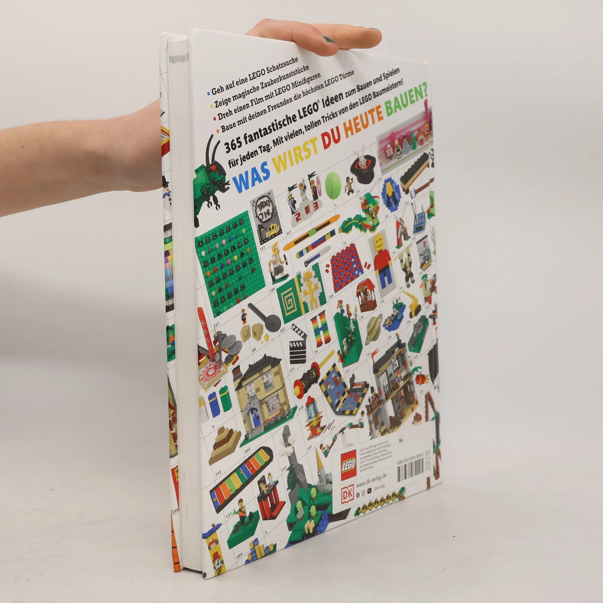 Ihr wollt mit LEGO® Steinen einen Roboter bauen, euch beim Geisterbowling gruseln oder einen eigenen Skaterpark für eure Minifiguren schaffen? Dann ist dieses Buch genau das Richtige für euch! 365 kreative Ideen liefern ultimativen LEGO Spaß für jeden Tag im Jahr. Wer baut den höchsten LEGO Turm? Fordert eure Freunde heraus und lasst euch inspirieren von den witzigen Spielen, Anleitungen und Tricks! Vom eigenen LEGO® Haustier über beeindruckende Gebäude bis hin zur spektakulären Zaubershow findet ihr in diesem originellen Buch unterschiedlich aufwendige Ideen für jeden Anlass. Und als absolutes Highlight könnt Ihr euren eigenen Film mit den LEGO Minifiguren in der Hauptrolle kreieren. Lasst eurer Kreativität einfach freien Lauf und erschafft rund ums Jahr eure eigene bunte LEGO Welt!