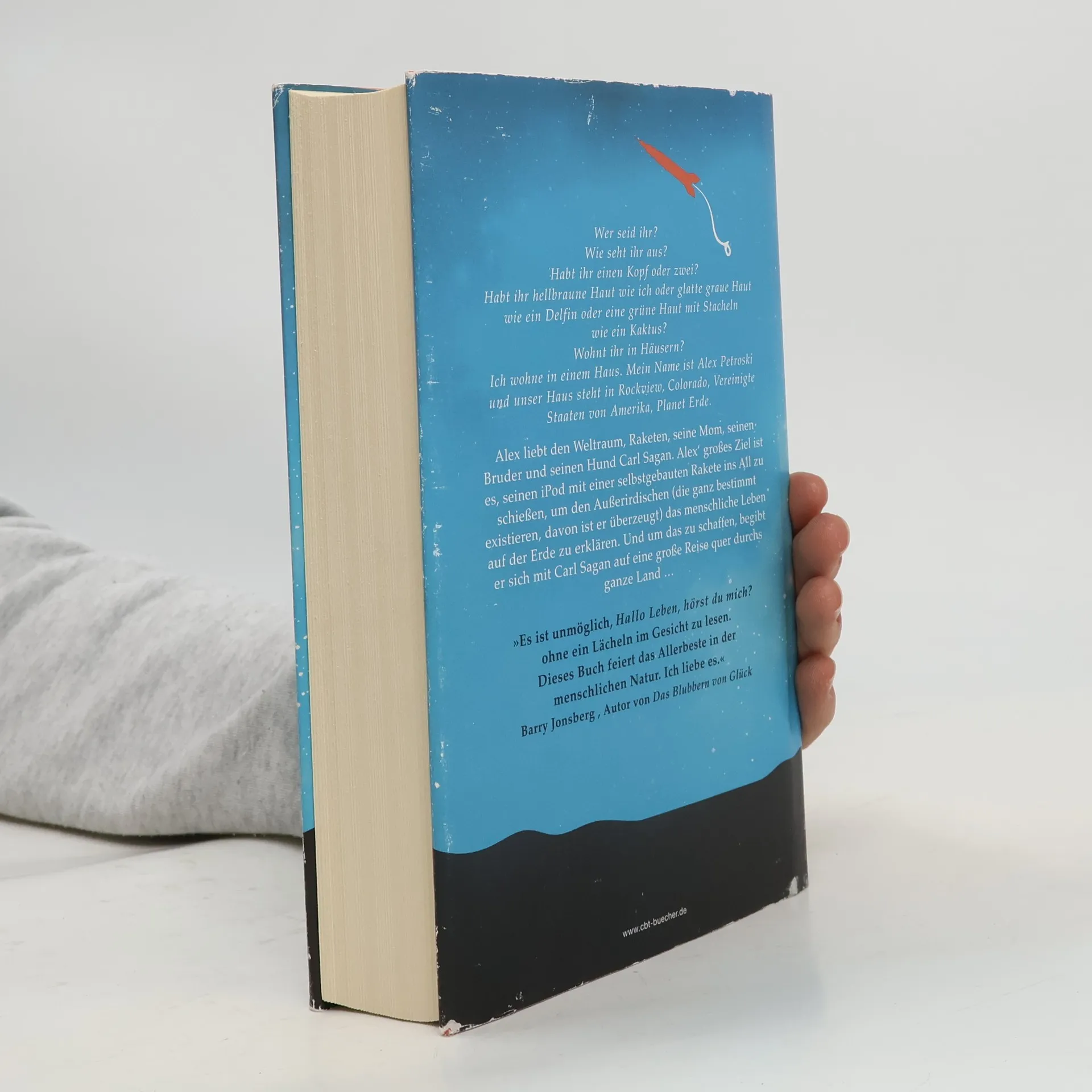 Was würdest du tun, wenn du allein mit deiner Mom lebst, die manchmal ihre “ruhigen Tage” hat, und du planst, deinen iPod mit einer selbstgebauten Rakete ins All zu schießen, um den Außerirdischen das menschliche Leben auf der Erde zu erklären? Ganz einfach: Der 11-jährige Alex wagt gemeinsam mit seinem Hund Carl Sagan die große Reise quer durchs Land zu einer Convention von Raketen-Nerds. Dabei lernt er nicht nur die unterschiedlichsten Menschen kennen, sondern erfährt auch eine Menge über Freundschaft, Familie, Liebe und all die anderen Dinge, die das Leben als Mensch so lustig, traurig, wunderschön und überraschend machen. Und zum Schluss ist Alex´ Welt um viele kostbare Freundschaften und sogar eine Schwester reicher.