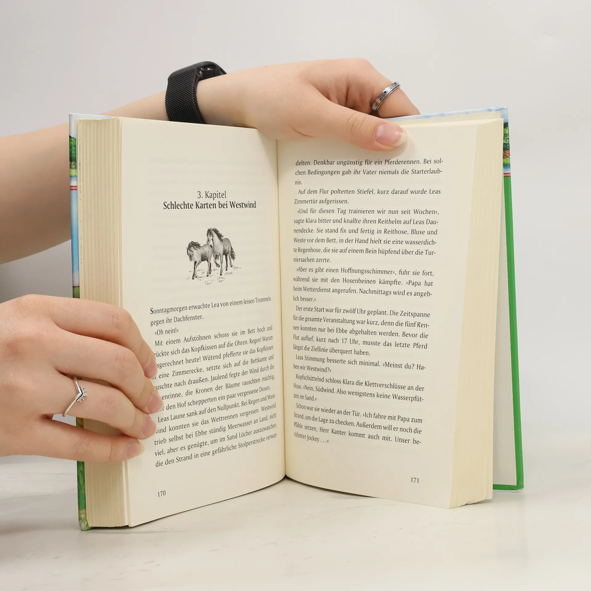 Lea und Klara sind Schwestern und echte Pferdefans. Für ihre geliebten Friesenpferde würden sie alles tun! Als sie in einem verlassenen Stall auf ein krankes Fohlen stoßen, setzen sie alles daran, es zu retten. Auch als ein Pferd ins Watt galoppiert, sind Lea und Klara zur Stelle und folgen dem Ausreißer. Dabei werden sie vom Wasser eingeschlossen und geraten selbst in Gefahr.