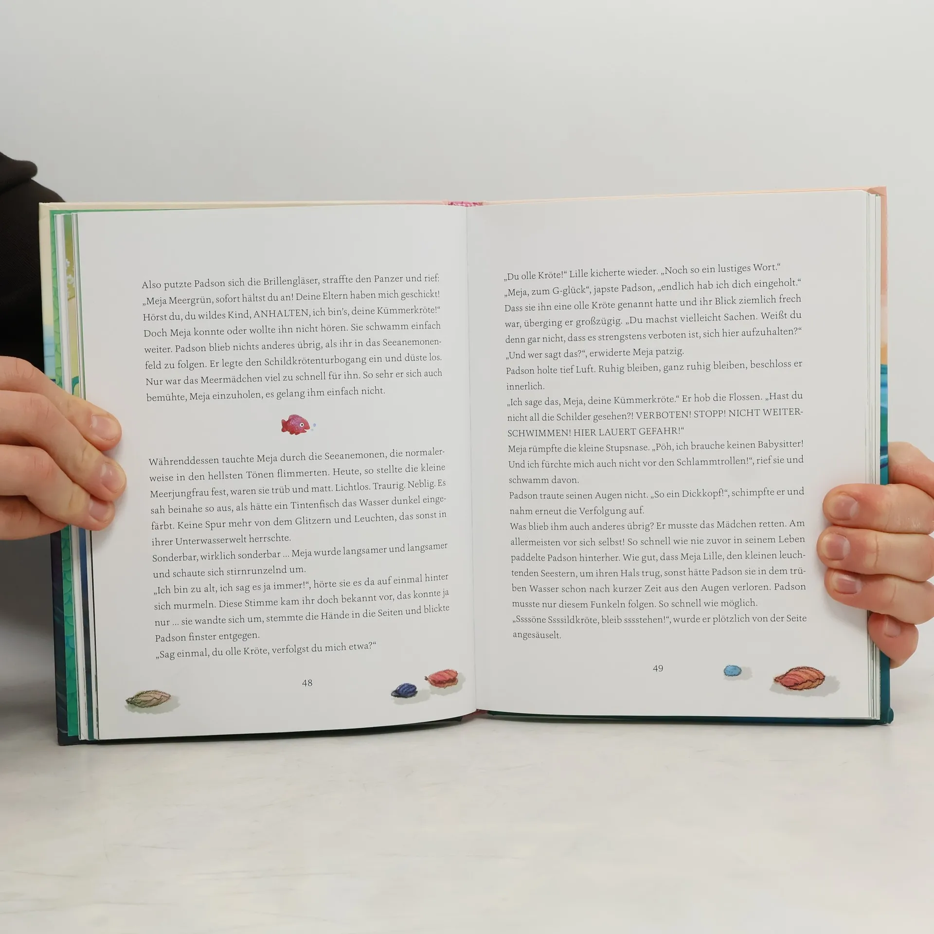 Meja Meergrün lebt ganz allein in dem runden Haus mit der meergrünen Glocke auf dem Grund des Ozeans, denn ihre Eltern sind dauernd in geheimer Mission unterwegs. Da entdeckt Meja eines Tages ein seltsames Päckchen vor ihrer Haustür. Neugierig, wie sie nun mal ist, öffnet sie die Kiste … und steht kurz darauf der ziemlich eigentümlichen Meeresschildkröte Padson, Gattung Kümmerkröte, gegenüber, die Meja von nun an auf Schritt und Tritt folgen wird. Zum Glück! Denn Meja schlittert schon bald in ein waghalsiges Abenteuer, in dem es um nichts Geringeres als die Rettung der Unterwasserstadt Lyckhav geht.