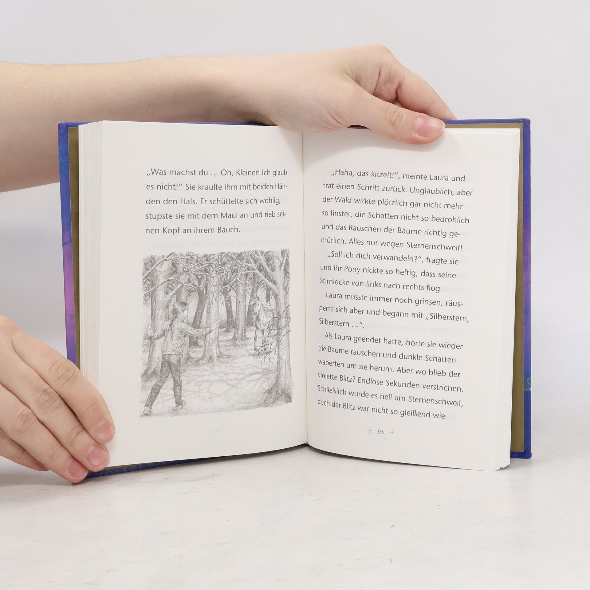 Seitdem ein Sturm Sternenschweifs Stall zerstört hat, wohnt er auf Reiterhof Apfelhain. Sehr selten nur kann Laura ihn nachts in ein Einhorn verwandeln. Als Sternenschweifs magische Kräfte auf einmal schwächer werden, trifft Laura eine mutige Entscheidung. Eine spannende und magische Geschichte mit viel Platz zum Träumen!