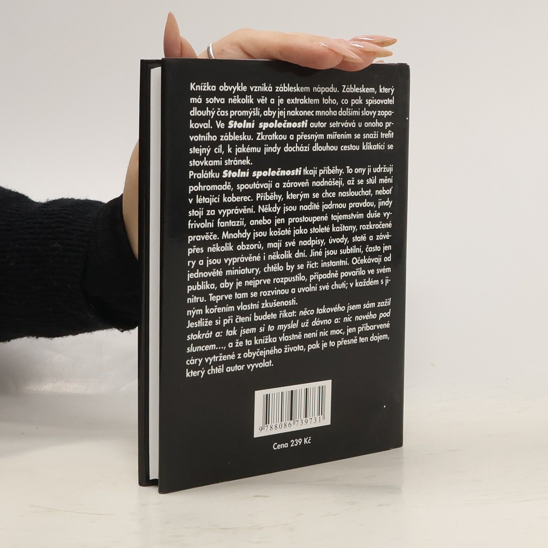 Příběhy, kterým se chce naslouchat, neboť stojí za vyprávění. Někdy jsou naplněné čistou pravdou, jindy frivolní fantazií, anebo jen prostoupené tajemstvím duše vypravěče. Mnohdy jsou košaté a jsou vyprávěné i několik dní. Jiné jsou subtilní, často jen jednověté miniatury. Jestliže si při čtení budete říkat: něco takového jsem sám zažil stokrát a: tak jsem si to myslel už dávno… Autorovy postřehy vystihují bohatost, pestrost i krutost lidského života. O každé větě lze dlouho přemýšlet.