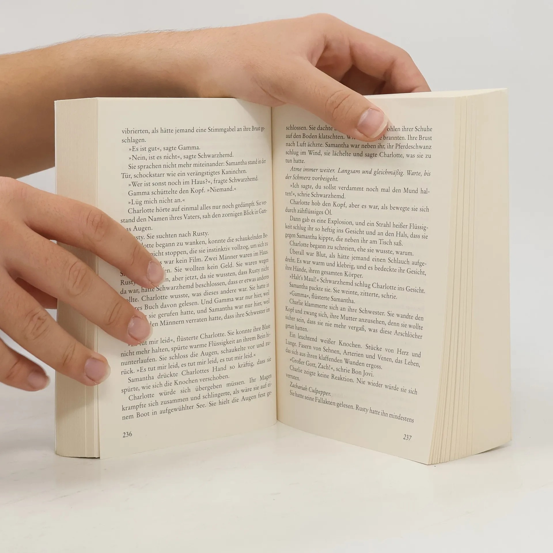 „Lauf!“, fleht ihre große Schwester Samantha. Mit vorgehaltener Waffe treiben zwei maskierte Männer Charlotte und sie an den Waldrand. „Lauf weg!“ Und Charlie läuft. An diesem Tag. Und danach ihr ganzes Leben. Sie ist getrieben von den Erinnerungen an jene grauenvolle Attacke in ihrer Kindheit. Die blutigen Knochen ihrer erschossenen Mutter. Die Todesangst ihrer Schwester. Das Keuchen ihres Verfolgers. Als Töchter eines berüchtigten Anwalts waren sie stets die Verstoßenen, die Gehetzten. 28 Jahre später ist Charlie selbst erfolgreiche Anwältin. Als sie Zeugin einer weiteren brutalen Bluttat wird, holt ihre Geschichte sie ganz ungeahnt ein. „Die gute Tochter“ ist ein Meisterwerk psychologischer Spannung. Nie ist es Karin Slaughter besser gelungen, ihren Figuren bis tief in die Seele zu schauen und jede Einzelne mit Schuld und Leid gleichermaßen zu belegen. „Die dunkle Vergangenheit ist stets gegenwärtig in diesem äußerst schaurigen Thriller. Mit Feingefühl und Geschick fesselt Karin Slaughter ihre Leser von der ersten bis zur letzten Seite.“ Camilla Läckberg „Eine großartige Autorin auf dem Zenit ihres Schaffens. Karin Slaughter zeigt auf nervenzerfetzende, atemberaubende und fesselnde Weise, was sie kann.“ Peter James „Karin Slaughter ist die gefeiertste Autorin von Spannungsunterhaltung. Aber Die gute Tochter ist ihr ambitioniertester, ihr emotionalster - ihr bester Roman. Zumindest bis heute.“ James Patterson „Es ist einfach das beste Buch, das man dieses Jahr lesen kann. Ehrlich, kraftvoll und wahnsinnig packend - und trotzdem mit einer Sanftheit und Empathie verfasst, die einem das Herz bricht.“ Kathryn Stockett „Die Brutalität wird durch ihre plastische Darstellung körperlich spürbar, das Leiden überträgt sich auf den Leser.“ (Hamburger Abendblatt) „Aber es sind nicht nur die sichtbaren Vorgänge und Handlungen von guten oder schlechten Individuen, die die (…) Autorin penibel genau beschreibt. Es sind vor allem die inneren, die seelischen Abläufe, die überzeugen.“ (SHZ) „Das alles schildert Slaughter mit unglaublicher Wucht und einem Einfühlungsvermögen, das jedem Psychotherapeuten zu wünschen wäre.“ (SVZ) „Die aktuelle Geschichte um die Quinns ist eine Südstaaten-Saga der besonderen Art, von der ihr nicht weniger erfolgreiche Kollege James Patterson sagt, sie sei ‚ihr ambitioniertester, ihr emotionalster, ihr bester Roman. Zumindest bis heute‘.“ (Focus Online) „Die Autorin hat hier ein ausgezeichnetes Buch vorgelegt, dass mich von der ersten bis zur letzten Seite gefesselt hat.“ (Krimi-Couch. de) „Es gibt Bücher, bei denen man das Atmen vergisst. Die Romane der amerikanischen Schriftstellerin gehören dazu. So auch dieser Pageturner. (…) Karin Slaughter versteht es meisterhaft, glaubwürdige Charaktere zu erschaffen und ihre Leser fortwährend zu überraschen.“ (Lebensart) „Atmosphärisch dichter Thriller über die sozialen Gespinste einer Kleinstadt, psychologisch sehr stimmig, mit vielen Schichten und Überraschungen.“ (Bayrischer Rundfunk) „Dieser Thriller hat es in sich, jede einzelne Figur hat Tiefe und Profil, nichts bleibt flach. Die 608 Seiten lesen sich einfach so weg: spannend, fesselnd, bewegend - von der ersten bis zur letzten Seite.“ (Hanauer Anzeiger)