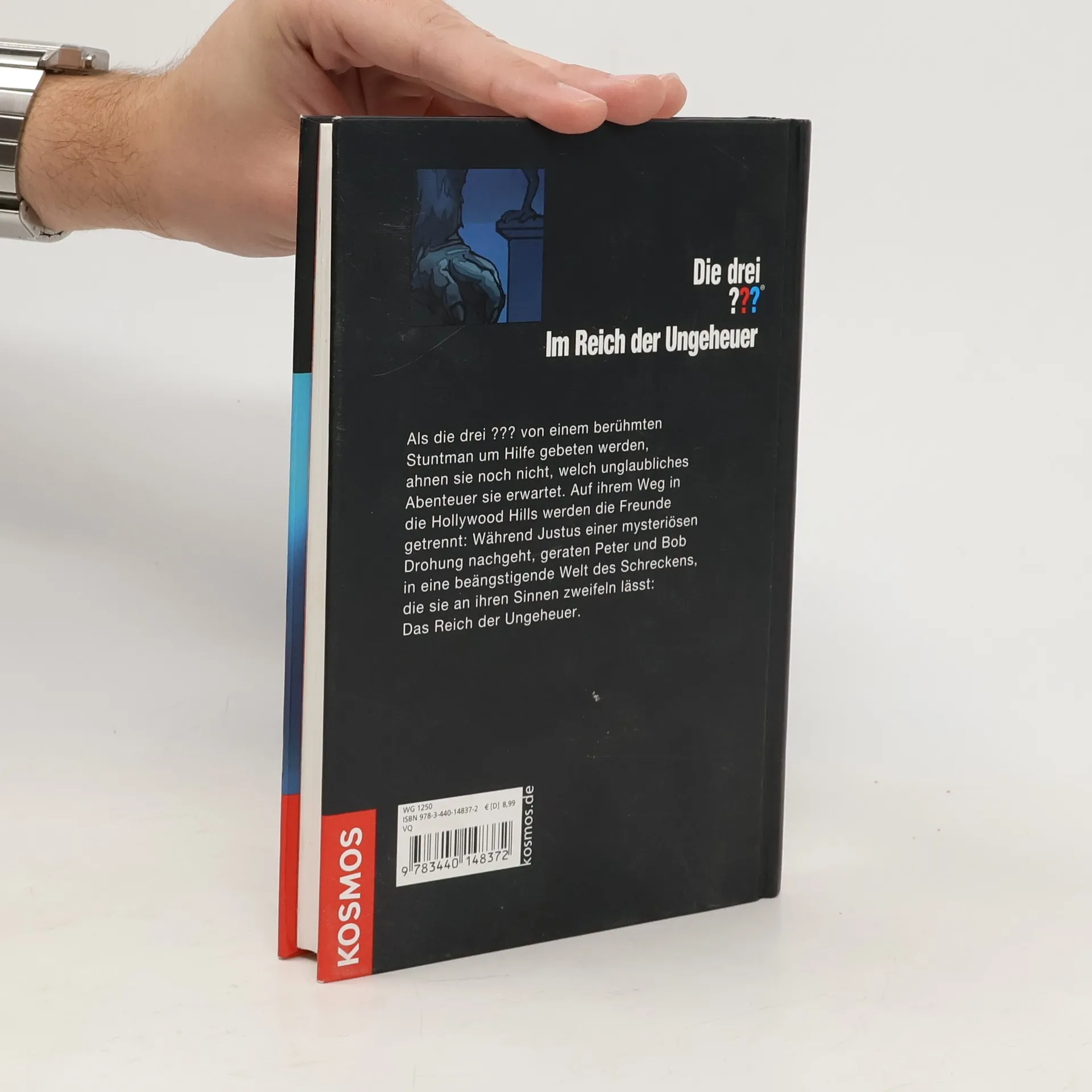 Als die drei ??? von einem berühmten Stuntman um Hilfe gebeten werden, ahnen sie noch nicht, welch unglaubliches Abenteuer sie erwartet. Auf ihrem Weg in die Hollywood Hills werden die Freunde getrennt: Während Justus einer mysteriösen Drohung nachgeht, geraten Peter und Bob in eine beängstigende Welt des Schreckens, die sie an ihren Sinnen zweifeln lässt: Das Reich der Ungeheuer.