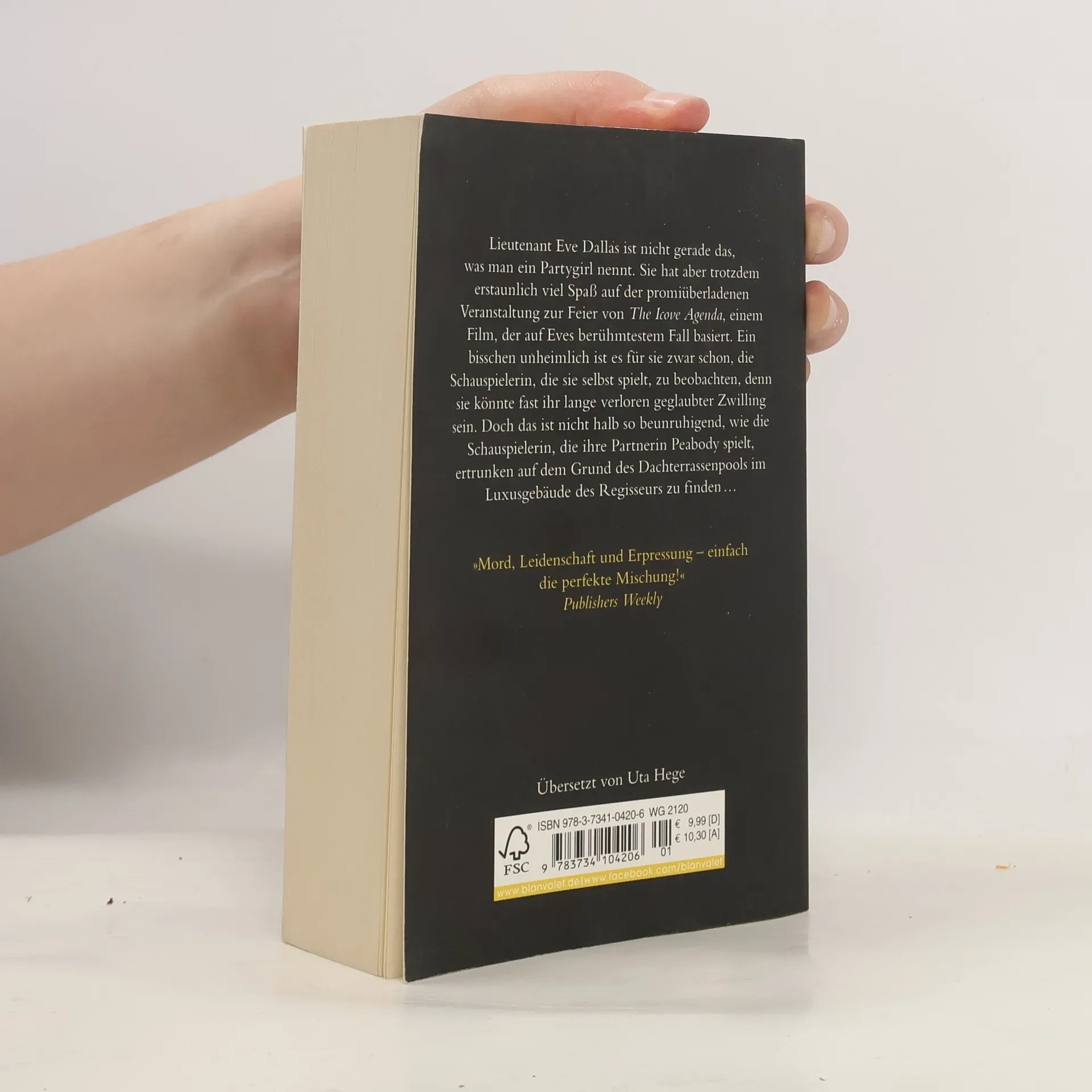 Sie war ein Star, doch jemand wollte sie tot sehen ... Lieutenant Eve Dallas ist nicht gerade das, was man ein Partygirl nennt, sie hat aber trotzdem erstaunlich viel Spaß auf der promiüberladenen Veranstaltung zur Feier von The Icove Agenda, einem Film, der auf Eves berühmtestem Fall basiert. Ein bisschen unheimlich ist es für sie zwar schon, die Schauspielerin, die sie selbst spielt, zu beobachten, denn sie könnte fast ihr lange verloren geglaubter Zwilling sein. Doch das ist nicht halb so beunruhigend, wie die Schauspielerin, die ihre Partnerin Peabody spielt, ertrunken auf dem Grund des Dachterrassenpools im Luxusgebäude des Regisseurs zu finden …