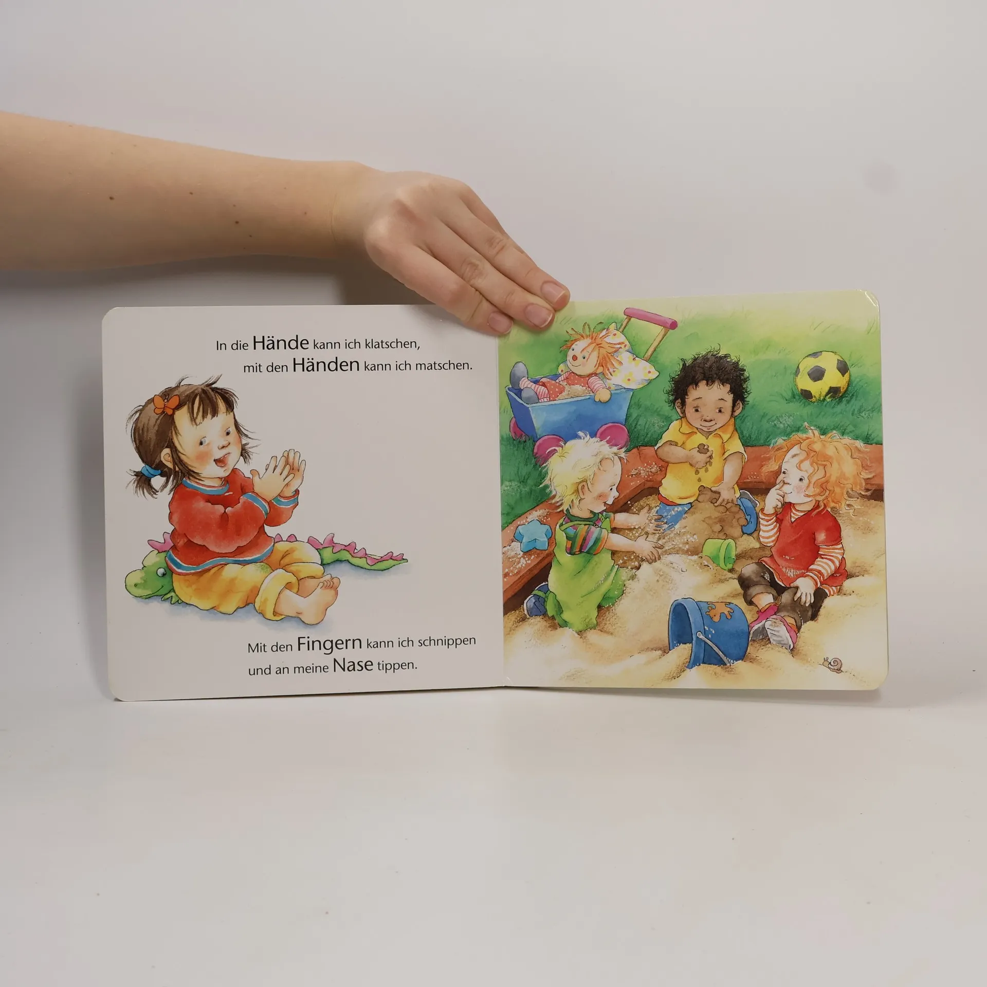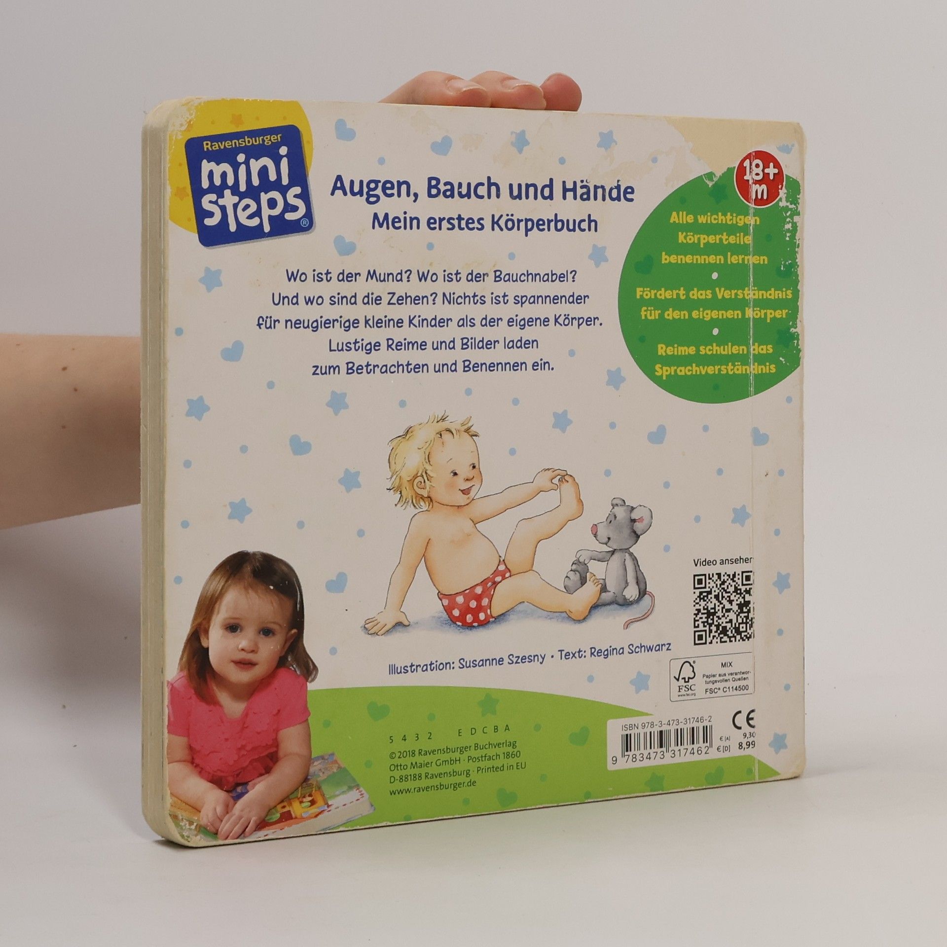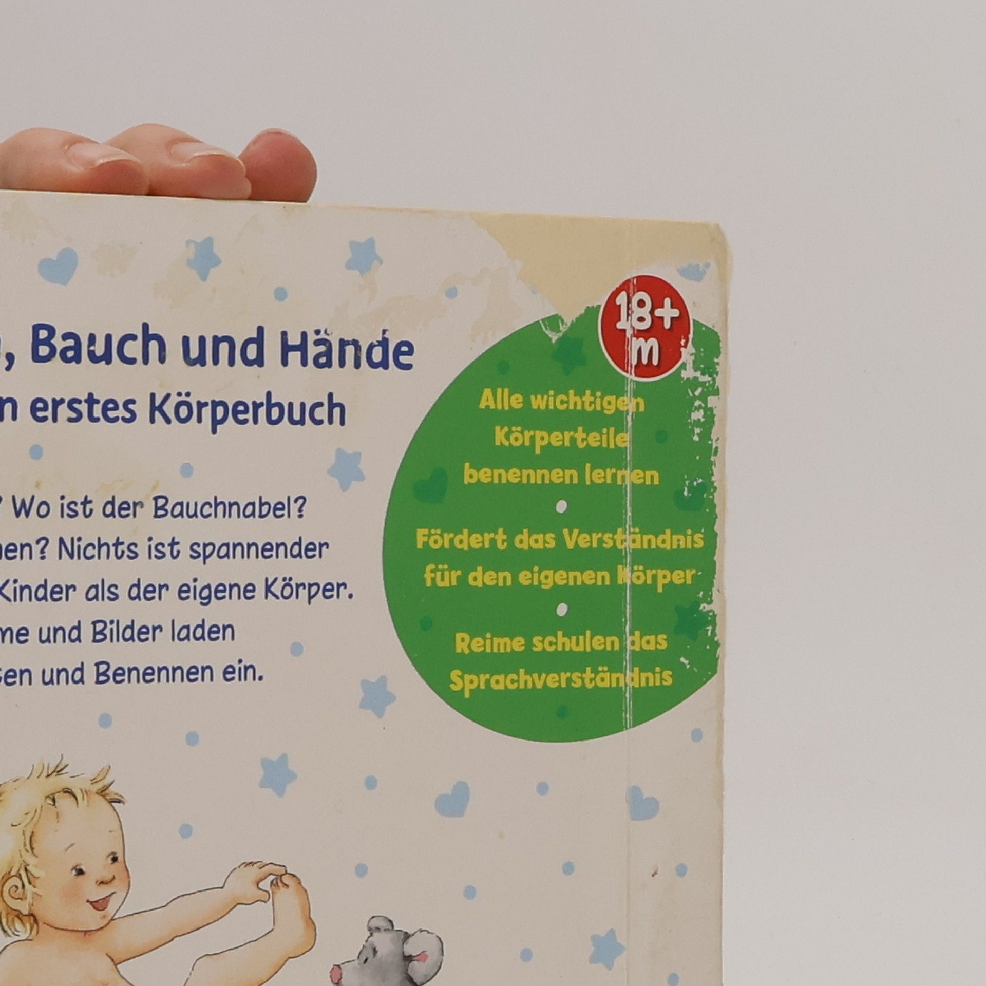 Von Kopf bis Fuß den Körper entdecken! Für Kleinkinder ist es unglaublich spannend, den eigenen Körper zu entdecken: Mit den Augen kann man sehen, mit den Händen klatschen und mit den Ohren hören. Von Kopf bis Fuß werden in diesem Kinderbuch alle wichtigen Körperteile wie Finger, Nase, Bauch vorgestellt. Kurze Reime benennen die Körperteile und erklären, was man mit ihnen machen kann. Was mache ich mit meinen Händen? Was kann ich mit meinen Ohren machen? Und wozu ist die Nase da? Kinder ab 18 Monate sind sehr neugierig und wollen alles über ihren Körper erfahren. Da ist dieses Buch genau das richtige! Es erklärt in kurzen lustigen Reimen, wie die Körperteile heißen und was man damit machen kann. Augen, Ohren, Nase, Zunge, Lippen, Mund, Hände, Finger, Kopf, Haare, Rücken, Po, Bauch und Bauchnabel, Beine, Füße und Zehen werden in liebevollen Versen angesprochen und in farbenfrohen Bildern dargestellt. Ein tolles Vorlesebuch, um gemeinsam über den Körper zu sprechen und diesen auf eine spielerische Weise kennenzulernen. Die kurzen Reime animieren zum Mitsprechen und Benennen der eigenen Körperteile. Dieses Körperbuch ist genau auf die Entwicklung von Kleinkindern abgestimmt. Es wurde von Pädagogen entwickelt und fördert Kleinkinder altersgerecht und mit viel Spaß!