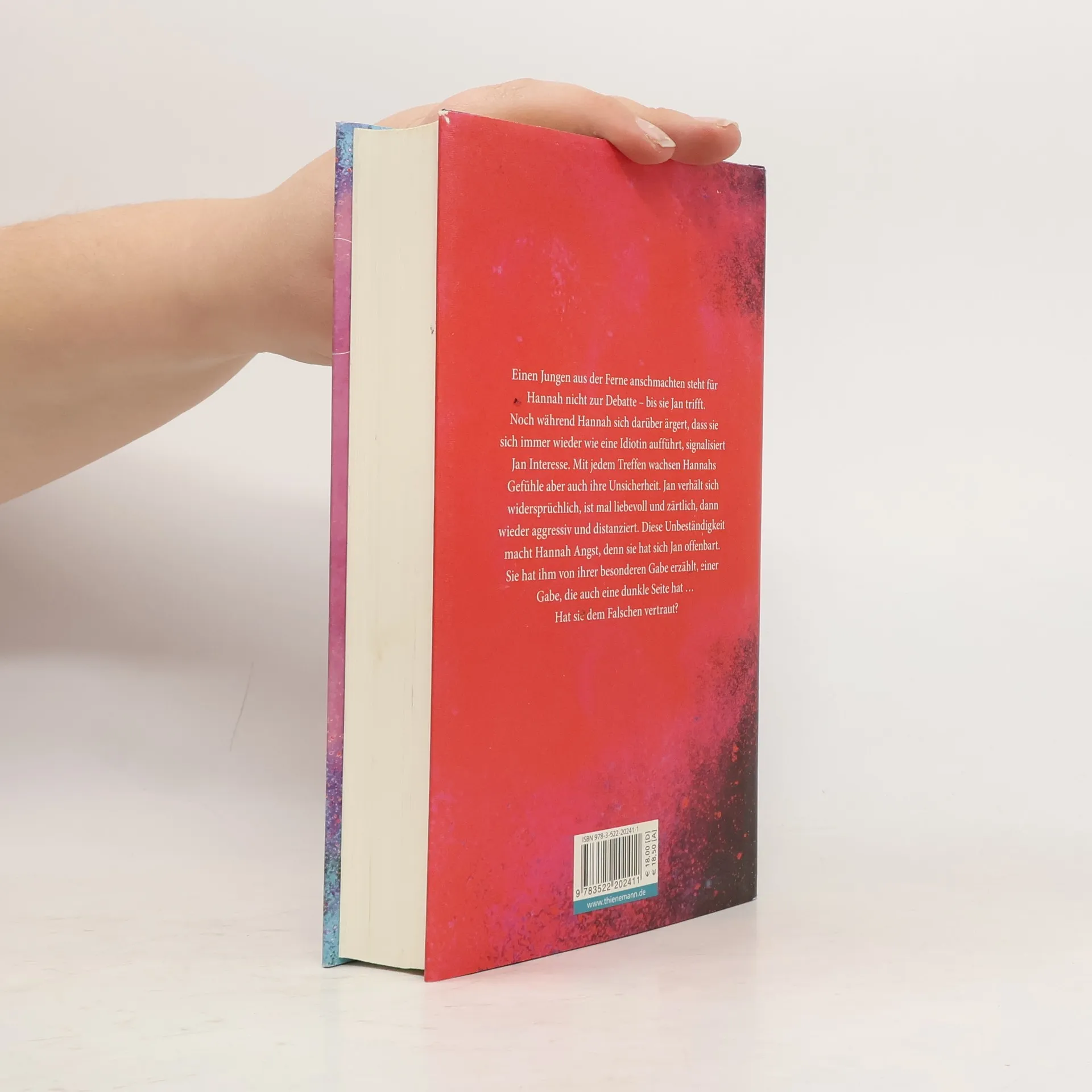 Einen Jungen aus der Ferne anschmachten, das steht für Hannah nicht zur Debatte – bis sie Jan trifft. Noch während Hannah sich darüber ärgert, dass sie sich immer wieder wie eine Idiotin aufführt, signalisiert Jan Interesse. Mit jedem Treffen wachsen Hannahs Gefühle aber auch ihre Unsicherheit. Jan verhält sich widersprüchlich, ist mal liebevoll und zärtlich, dann wieder aggressiv und distanziert. Diese Unbeständigkeit macht Hannah Angst, denn sie hat sich Jan offenbart. Sie hat ihm von ihrer besonderen Gabe erzählt, einer Gabe, die auch eine dunkle Seite hat ... Hat sie dem Falschen vertraut?