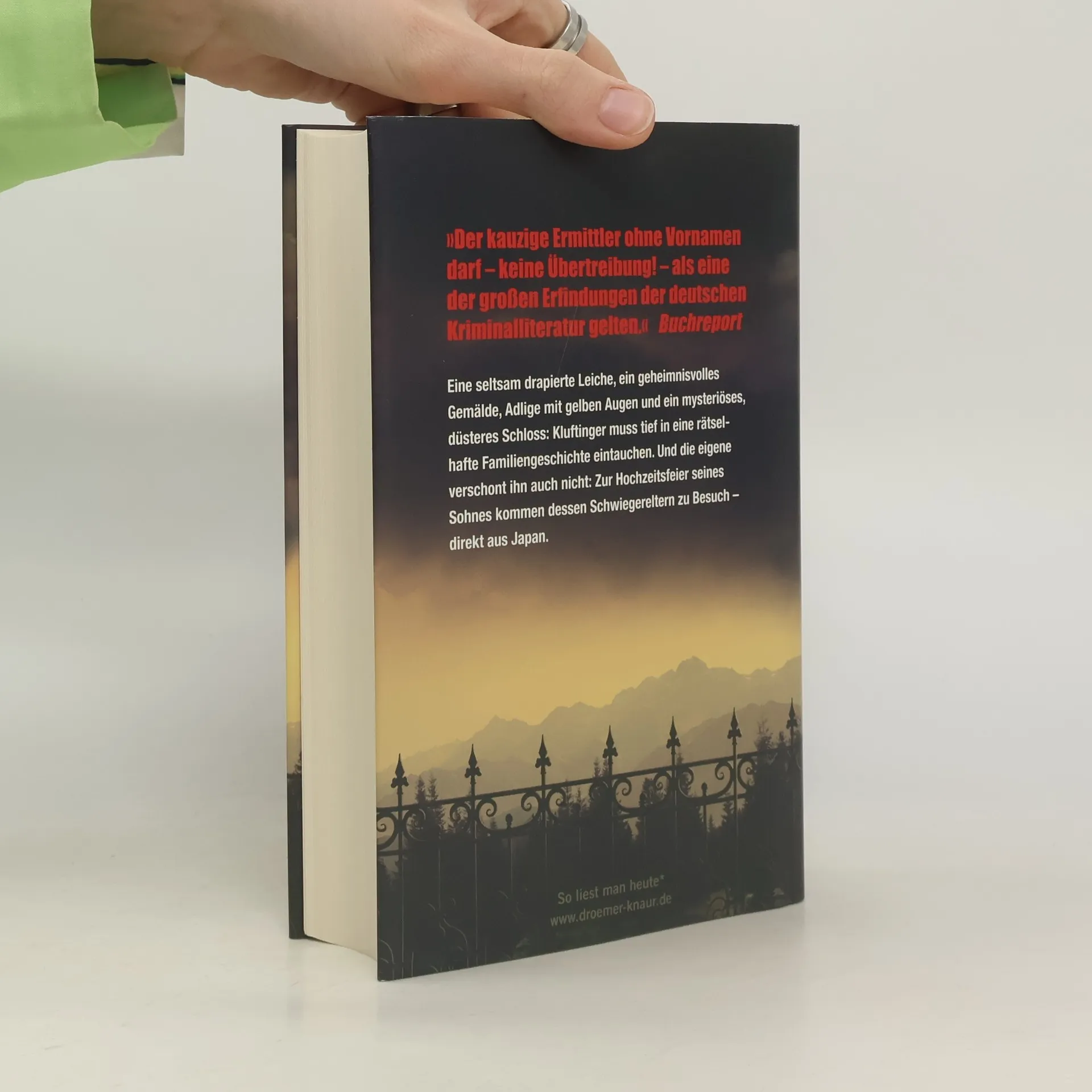 Kluftingers neuer Fall führt ihn ins Schloss in Bad Grönenbach, wo ihn allerlei Merkwürdiges erwartet: Die Frau des Barons wurde nicht nur ermordet, sondern auch noch wie auf einem uralten Familienporträt hergerichtet. Auf dem Gemälde ist ein Mann mit seltsam gelben Augen zu sehen. Und der Baron verschwindet immer wieder im schlosseigenen Märchenwald. Auch privat geht es bei Kluftinger märchenhaft zu: Sein Sohn heiratet, und zur Feier haben sich die Schwiegereltern aus Japan angesagt. Zum Glück lässt Kluftingers Intimfeind Langhammer nicht lange auf sich warten, um dem Kommissar bei dieser kulturellen Herausforderung zu helfen.