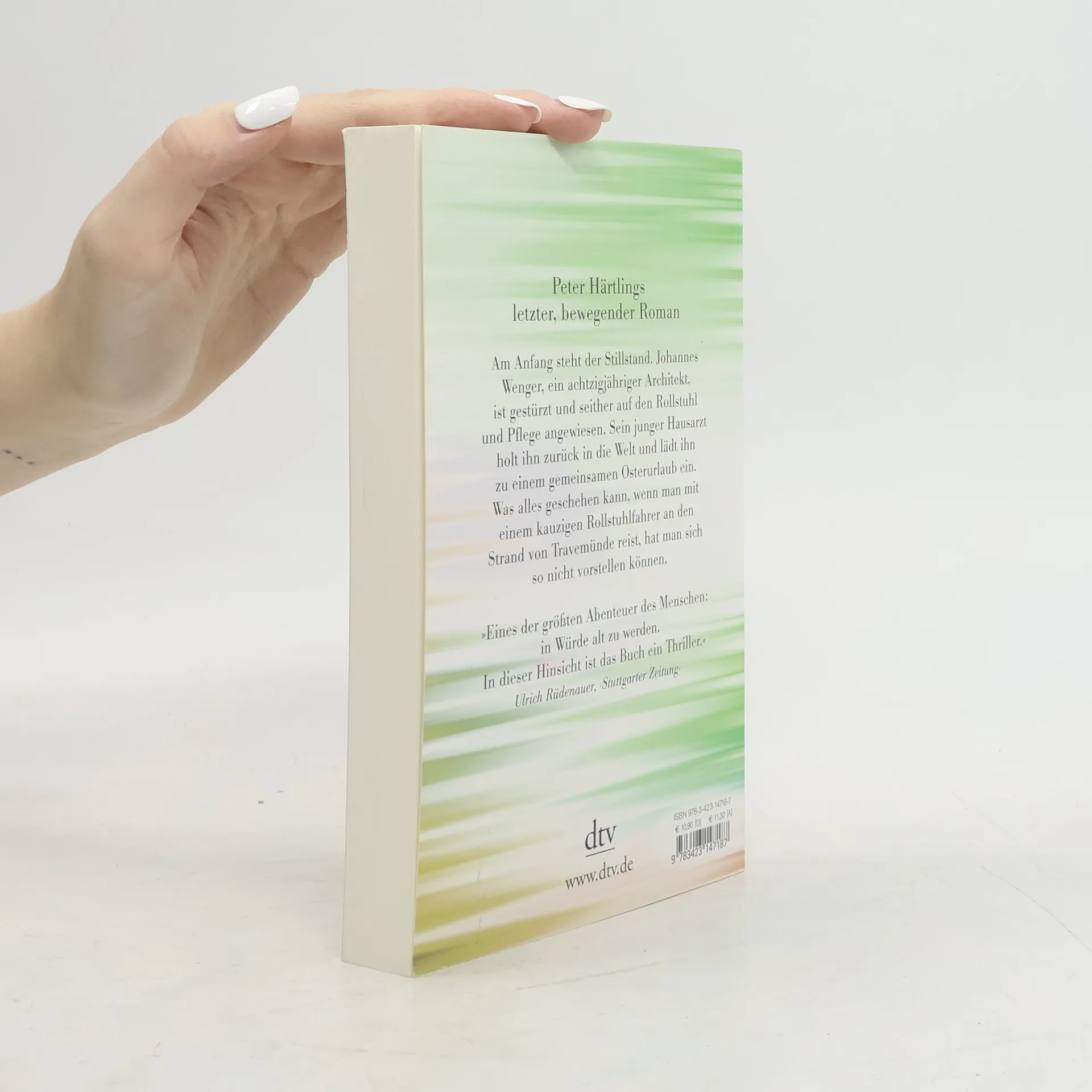 »Eines der größten Abenteuer des Menschen: in Würde alt zu werden. In dieser Hinsicht ist das Buch ein Thriller.« Ulrich Rüdenauer in ›Stuttgarter Zeitung‹ Johannes Wenger, ein achtzigjähriger alleinstehender Architekt, ist gestürzt und seither auf den Rollstuhl und Pflege angewiesen. Das macht den Alltag mühsam und lässt viel Raum für Einsamkeit und Melancholie. Sein junger Hausarzt Dr. Mailänder holt ihn zurück in die Welt und lädt ihn mit seiner Familie zu einem gemeinsamen Osterurlaub ein. Was alles geschehen kann, wenn man mit einem kauzigen Rollstuhlfahrer an den Strand von Travemünde reist, hat man sich so nicht vorstellen können. Mit viel Gefühl nimmt Härtling seine Leser mit in die Mühsal des Alters und zeigt, welch großes Glückspotenzial diese Lebensphase besitzt.
