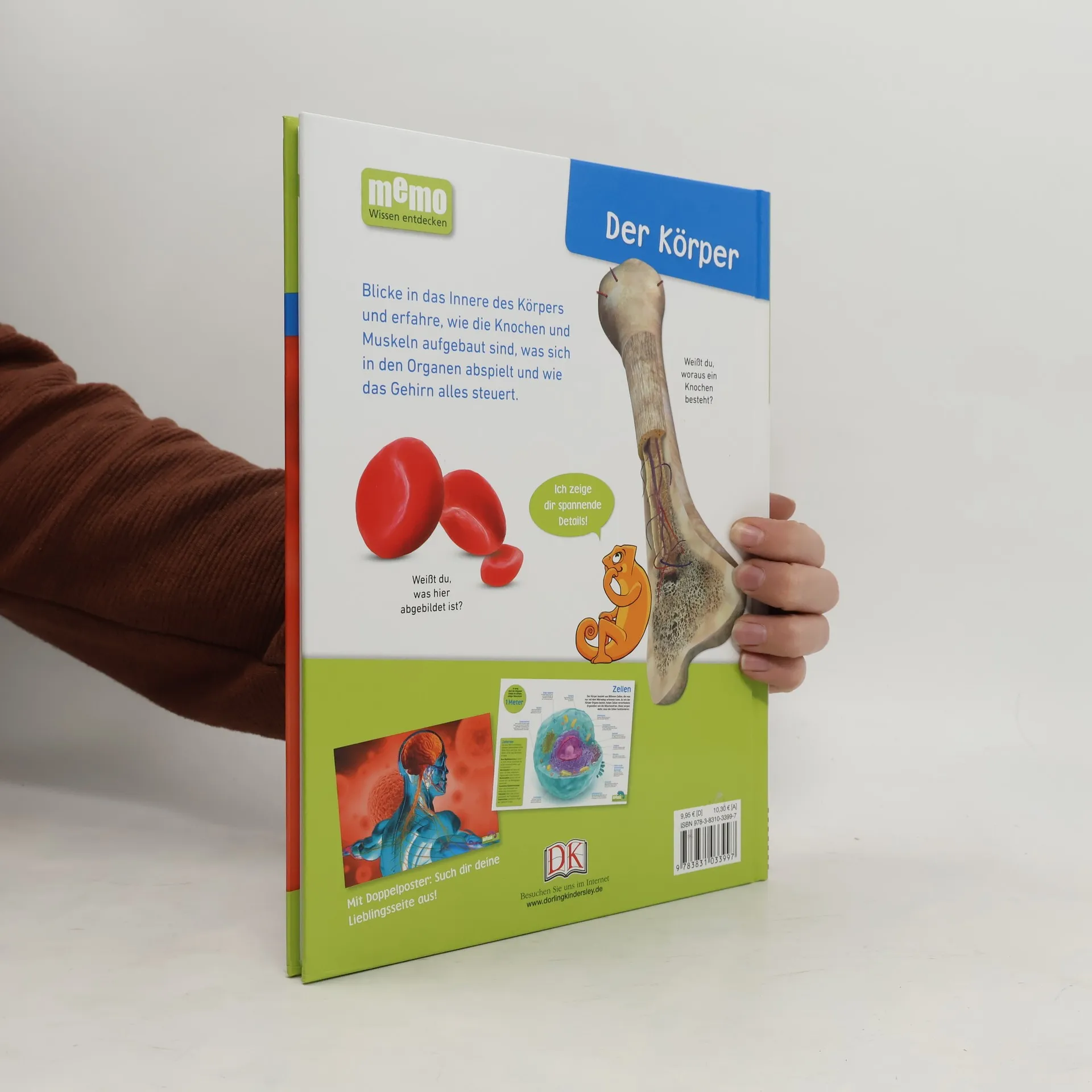 Der Mensch von Kopf bis Fuß! Dieses tolle Sachbuch erklärt Kindern das Wunderwerk des menschlichen Körpers: Sie können Gehirn, Herz oder Lunge genau betrachten, Verdauungs- oder Fortpflanzungsprozesse verstehen und einen Ausblick in die Zukunft der Medizin wagen. Die beliebte Kindersachbuchreihe memo Wissen entdecken verpackt faszinierendes Wissen für Kinder in kurze, lesefreundliche Texte und viele detailreiche Bilder. Jetzt sogar im frischen, übersichtlichen neuen Layout und mit einem illustrierten Chamäleon-Charakter, der durchs Buch begleitet und beeindruckende Details erklärt oder kommentiert. Dazu gibt‘s ein beidseitig bedrucktes Poster zum Aufhängen im Kinderzimmer – mit einem spektakulären Foto auf der einen und einer informativen Grafik auf der anderen Seite. Die interessante Rubrik „Neugierig geworden?“ vertieft das erworbene Wissen für Kinder zusätzlich und ein Glossar am Ende des Buches sorgt abschließend noch einmal für eine super Übersicht. Eine ausführliche Chronik schafft außerdem einen Überblick zu spannenden Entwicklungen aus Anatomie und Psychologie. Das ist großes Wissen in kleinen Häppchen – mit Aha-Erlebnis und Wow-Effekt auf jeder Seite! Das Lieblingsthema „Mensch“ wird in memo Wissen entdecken sachlich kompetent, gleichzeitig leicht verständlich und unterhaltsam vermittelt. Perfekt für junge Leser – als Ergänzung zum Schulunterricht oder für Referate. Dieses Buch ist bei Antolin. de verfügbar.