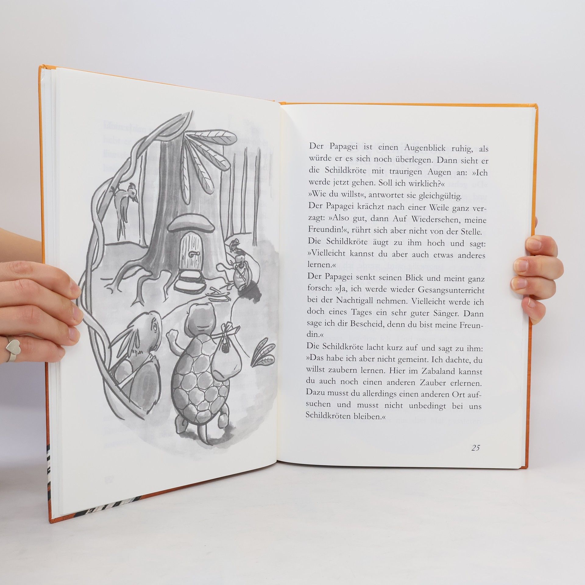 Die Schildkröte und der Papagei machen gemeinsam eine Reise ins Zabaland. Doch das Zabaland ist weit weg und das ist für den Papagei nicht leicht zu ertragen. Zwar ist er sehr neugierig, aber überhaupt nicht geduldig. Auch verspottet er gerne die Schildkröte wegen ihren kurzen O-Beinen, und das wiederum gefällt ihr nicht. Die Reise ins Zabaland ist wichtig für beide, denn sie wollen dort die wunderbare Kunst des Kribbelzaubers lernen. Weil es ihnen aber schwer fällt, sich gut zu verstehen und zu mögen, wird die lange Reise schwierig.