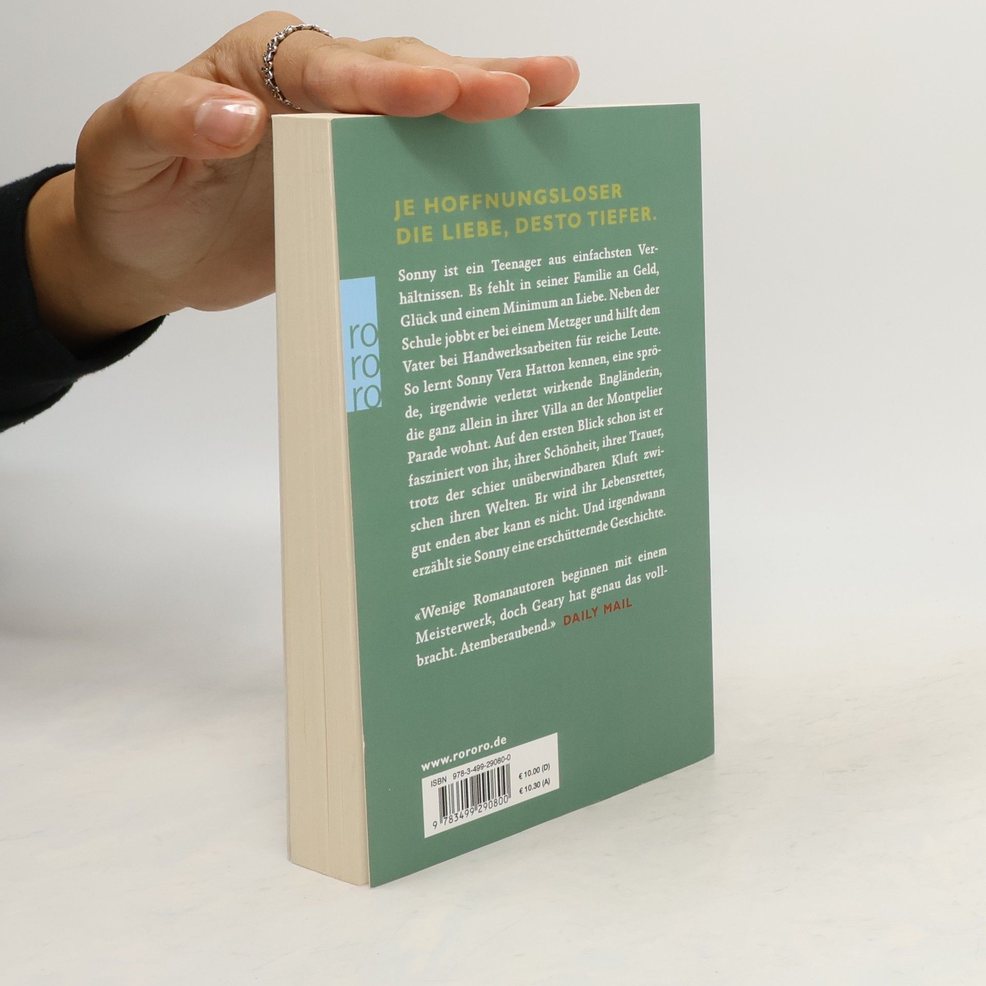 Je hoffnungsloser die Liebe, desto tiefer. Sonny ist ein Teenager aus einfachsten Verhältnissen. Es fehlt in seiner Familie an Geld, Glück und einem Minimum an Liebe. Neben der Schule jobbt er bei einem Metzger und hilft dem Vater bei Handwerksarbeiten für reiche Leute. So lernt Sonny Vera Hatton kennen, eine spröde, irgendwie verletzt wirkende Engländerin, die ganz allein in ihrer Villa an der Montpelier Parade wohnt. Auf den ersten Blick schon ist er fasziniert von ihr, ihrer Schönheit, ihrer Trauer, trotz der schier unüberwindbaren Kluft zwischen ihren Welten. Er wird ihr Lebensretter, gut enden aber kann es nicht. Und irgendwann erzählt sie Sonny eine erschütternde Geschichte.