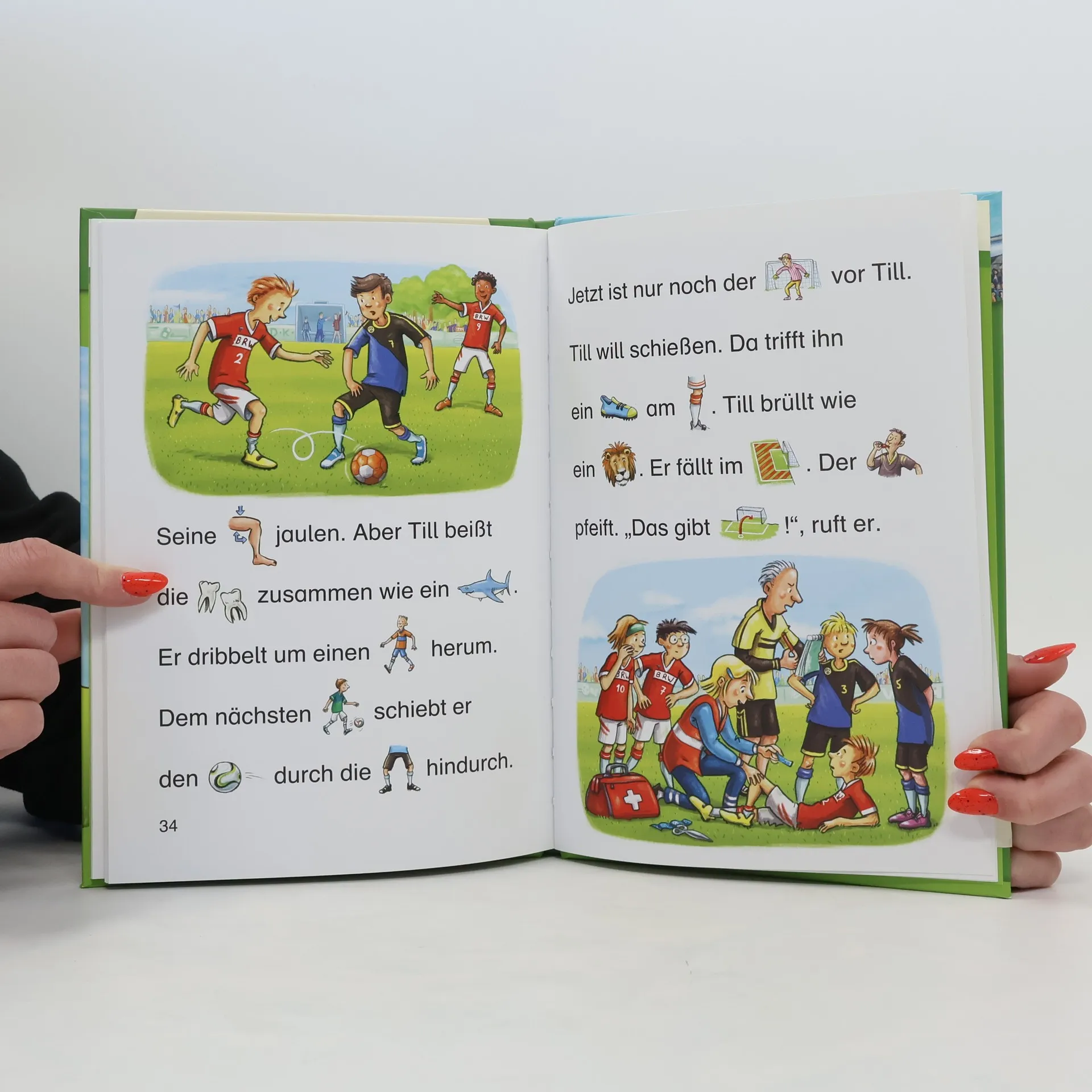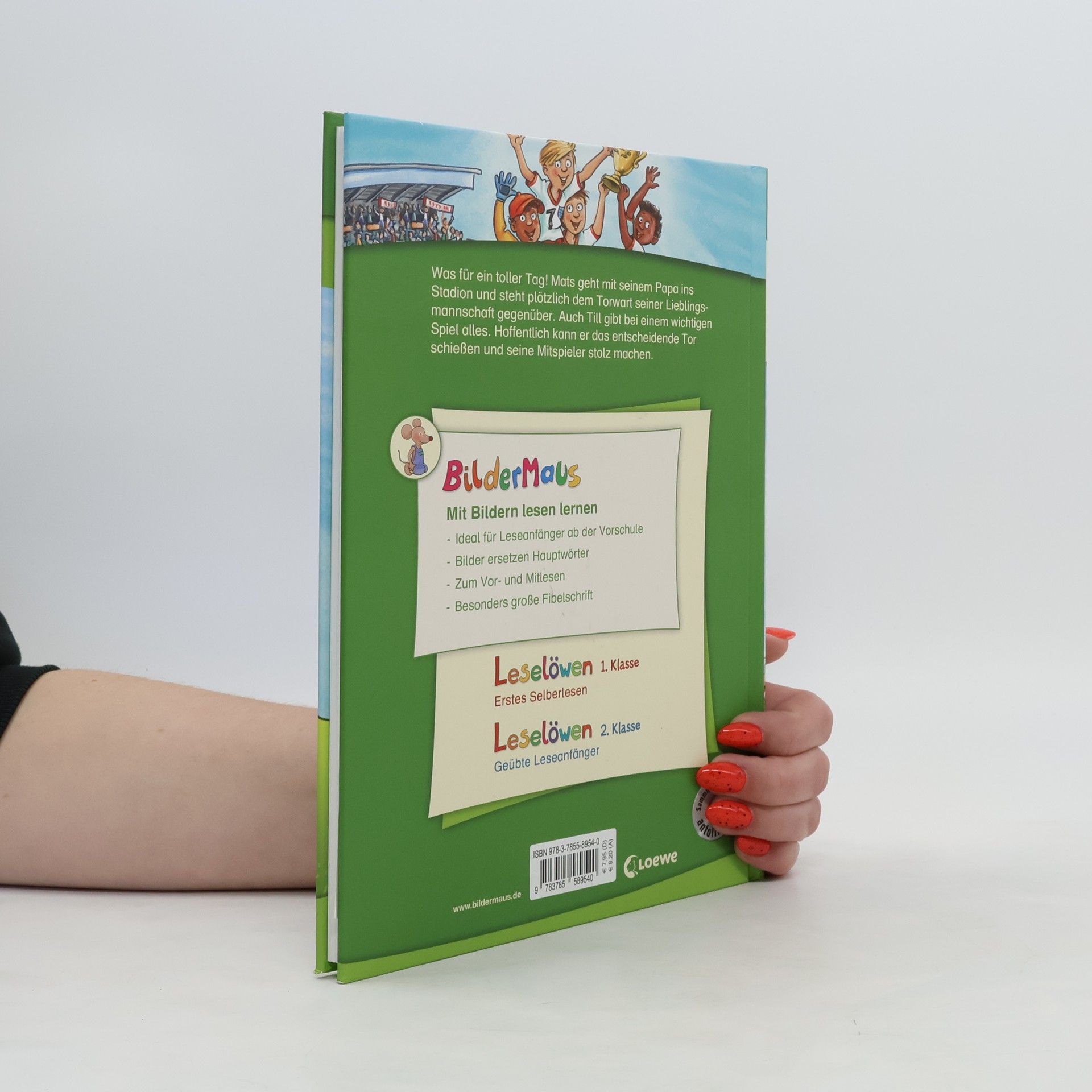 Was für ein toller Tag! Mats geht mit seinem Papa ins Stadion und steht plötzlich dem Torwart seiner Lieblingsmannschaft gegenüber. Auch Till gibt bei einem wichtigen Spiel alles. Hoffentlich kann er das entscheidende Tor schießen und seine Mitspieler stolz machen. Mit der Reihe Bildermaus können Kinder schon ab 5 Jahren (Vorschule) spielerisch lesen lernen mit Bildern: Jedes Hauptwort ist durch ein Bild ersetzt. Schenken Sie Ihrem Kind ein Bildermaus -Buch und legen Sie damit den Grundstein zum erfolgreichen Lesenlernen. Spannende Geschichten für Fußball-Fans Bewährtes Konzept: Seit über 25 Jahren begleitet die Bildermaus Kinder erfolgreich auf dem Weg zum Lesenlernen Über 4 Millionen verkaufte Exemplare in Deutschland, Österreich und der Schweiz Ideal für Leseanfänger ab der Vorschule, zum Vor- und Mitlesen Von Pädagogen mitentwickelt und empfohlen Bilder ersetzen Wörter Abwechslungsreiche und spannende Geschichten Jedes Buch ist genau auf die Interessen von Kindern im Vorschulalter ausgerichtet Einfache, kurze Sätze in großer Fibelschrift unterstützen optimal den Leselern-Prozess Abwechslungsreiche Quizfragen auf Antolin steigern die Lesemotivation