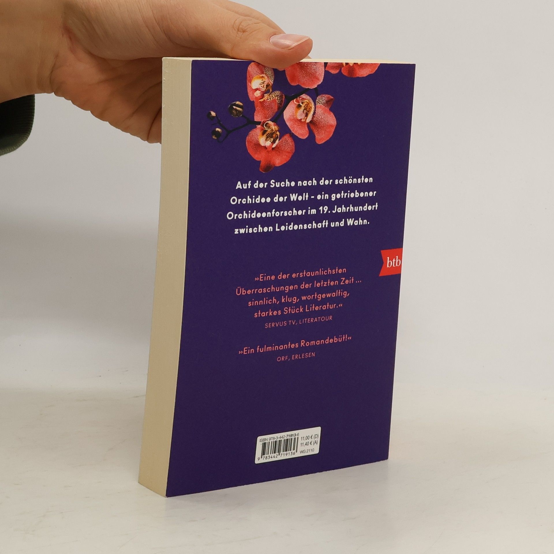 Anselm ist Botaniker und leidenschaftlicher Orchideenforscher. Mitte des 19. Jahrhunderts begibt er sich auf eine Expedition nach Madagaskar. Dort findet er nicht nur die schönste Orchidee der Welt, sondern Erfüllung, die aber nur von kurzer Dauer ist. Auf dem Schiff zurück in die Heimat verrückt sich etwas in Anselm: Aus seiner Schulter wächst eine Orchidee. Zu Hause angekommen, bringen ihn seine Eltern in eine Nervenheilanstalt, wo er sich bald wieder erholt. Seiner wissenschaftlichen Laufbahn scheint nichts mehr im Wege zu stehen. Doch die Zeit arbeitet gegen ihn: Die politischen Umbrüche verändern sein Umfeld. Die wissenschaftlichen Neuerungen durch Darwin stellen seine Theorien auf den Kopf. Und die überstürzte Reise nach China bringt Ungeahntes zutage.Verena Stauffer beweist in ihrem Debütroman ein besonderes Gespür für die Wahrnehmungen und Empfindungen ihrer Figuren. Sie lässt uns teilhaben an einer höchst sinnlichen Reise in den fernen Osten und führt uns noch weiter – in die Abgründe und das Innerste der menschlichen Psyche."Eines Tages, so erzählte er später, begannen die Orchideen sich zu bewegen, irgendwann legten sie ihre Blätter auf seinen Kopf, hielten ihn und legten ihre Blütenhäupter daneben."