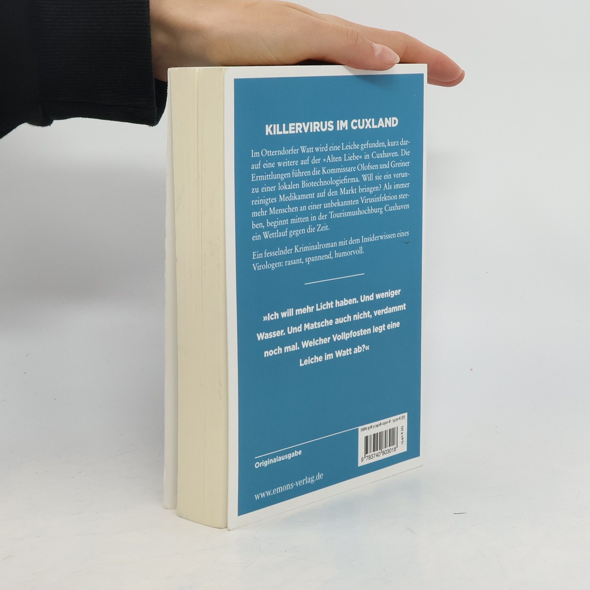 Kommissar Olofsen ermittelt in einem fesselnden Wissenschaftskrimi. Im Otterndorfer Watt wird eine Leiche gefunden, kurz darauf eine weitere auf der »Alten Liebe« in Cuxhaven. Die Ermittlungen führen die Kommissare Olofsen und Greiner zu einer Otterndorfer Biotechnologiefirma. Will man ein verunreinigtes Medikament auf den Markt bringen? Als plötzlich immer mehr Menschen an einer unbekannten Virusinfektion sterben, beginnt mitten in der Tourismushochburg Cuxhaven ein Wettlauf gegen die Zeit. Olofsen und Greiner müssen hinter die Kulissen der pharmazeutischen Industrie schauen, um eine Katastrophe zu verhindern.